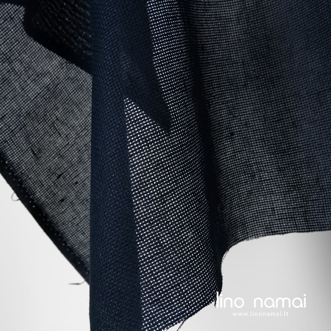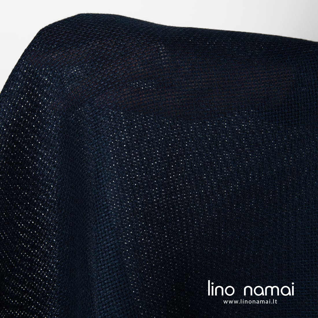 Lininis audinys tamsiai mėlynas ažūrinis, austas kiauraraščio langeliais. Tvirtas, vidutinio storio linas ypač tinka siuvinėjimui kryželiu, kitiems rankdarbiams.