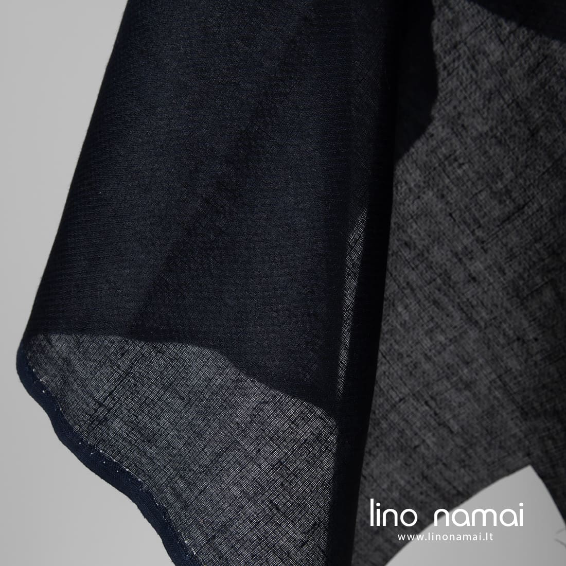Lininis audinys tamsiai mėlynas raštuotas, išaustas smulkiu raštu tamsiai mėlynus verpalus derinant su juodais. Lengvas, tankus, iš dalies permatomas.
