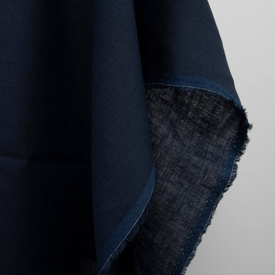 Tamsiai mėlynas lininis audinys, austas drobiniu pynimu. Plonas, lengvas, tvirtas, tankus.