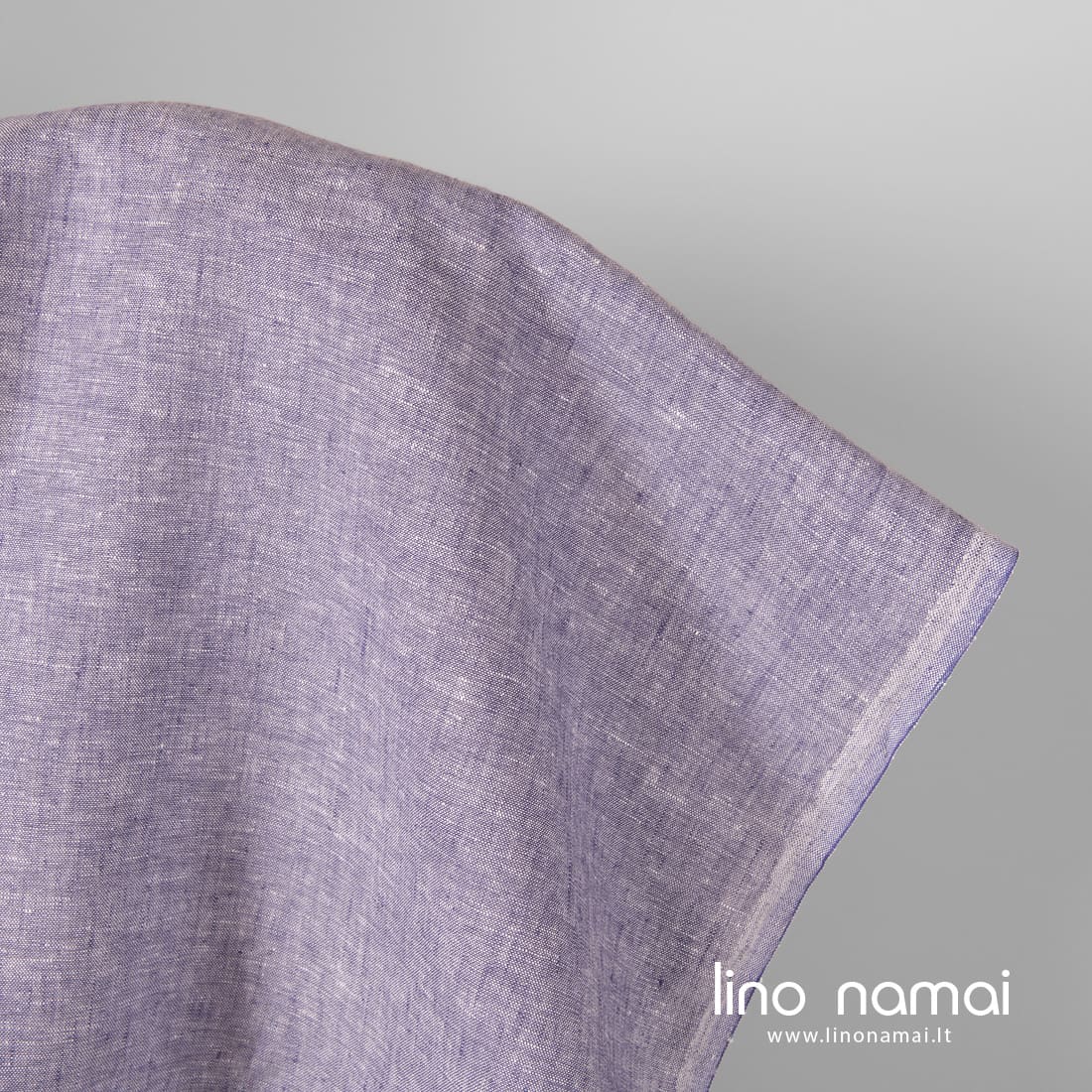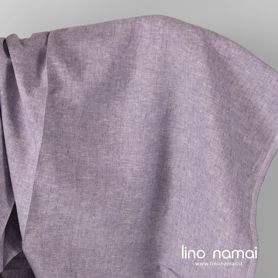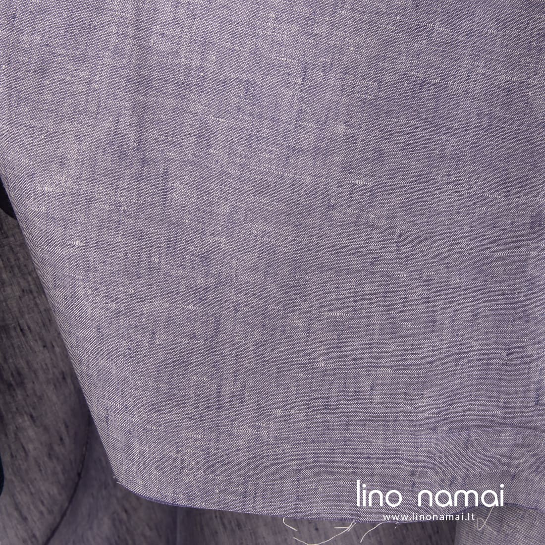Lininis audinys violetinis melanžinis: kartu su violetinės spalvos verpalais jame įausti pieno baltumo (gelsvai balti) verpalai, duodantys margumo. Šis tvirtas, tankus linas tinka drabužiams ir namų tekstilei siūti.