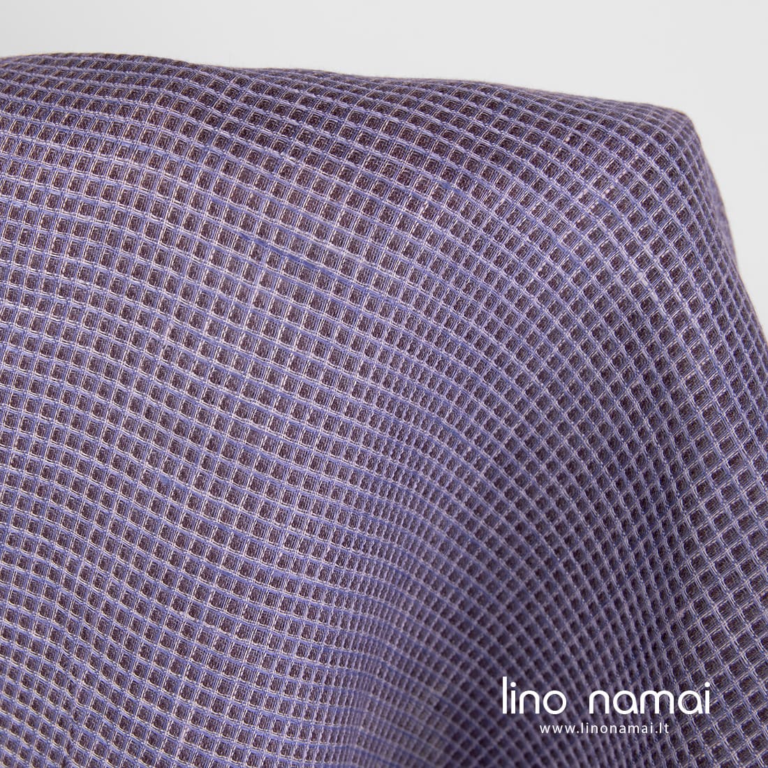 Lininis audinys violetinis „vaflinis“, išaustas naudojant kelių atspalvių violetinius verpalus. Lengvas, tvirtas, tankus, vidutinio storio. „Vafliniai“ langeliai išryškės išskalbus šį audinį. Šis linas tinkamas vonios, virtuvės rankšluosčiams, chalatams siūti.