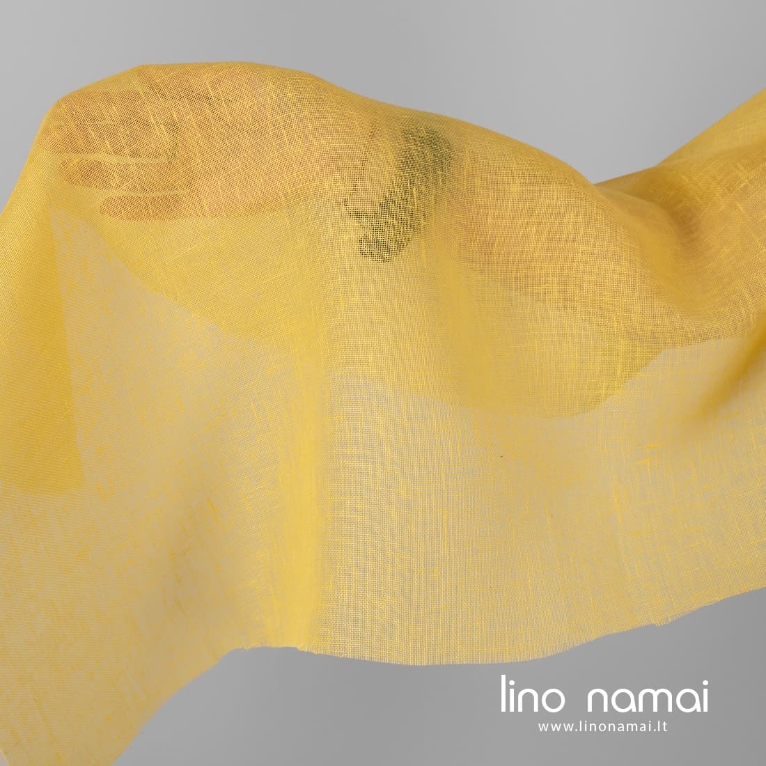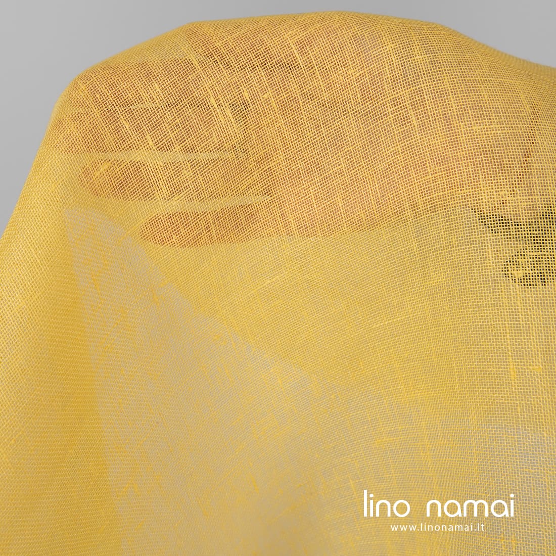 Lininis permatomas audinys geltonas. Retas, lengvas. Iš šio lino audinio galima siūti užuolaidas, šalikus, daryti rankdarbius.