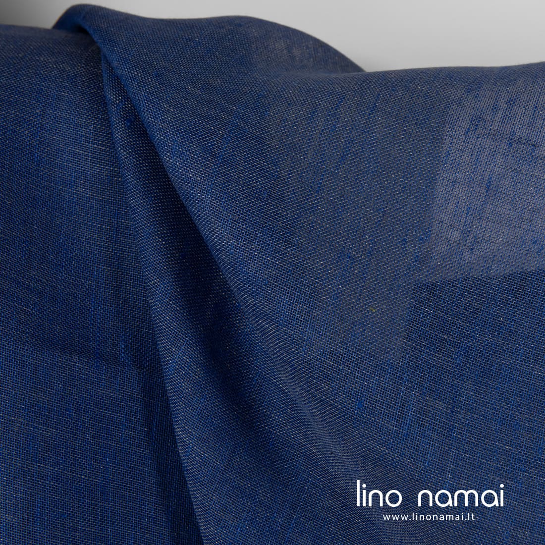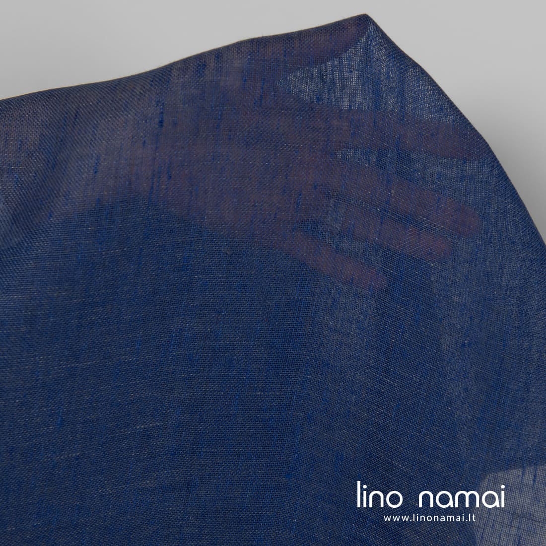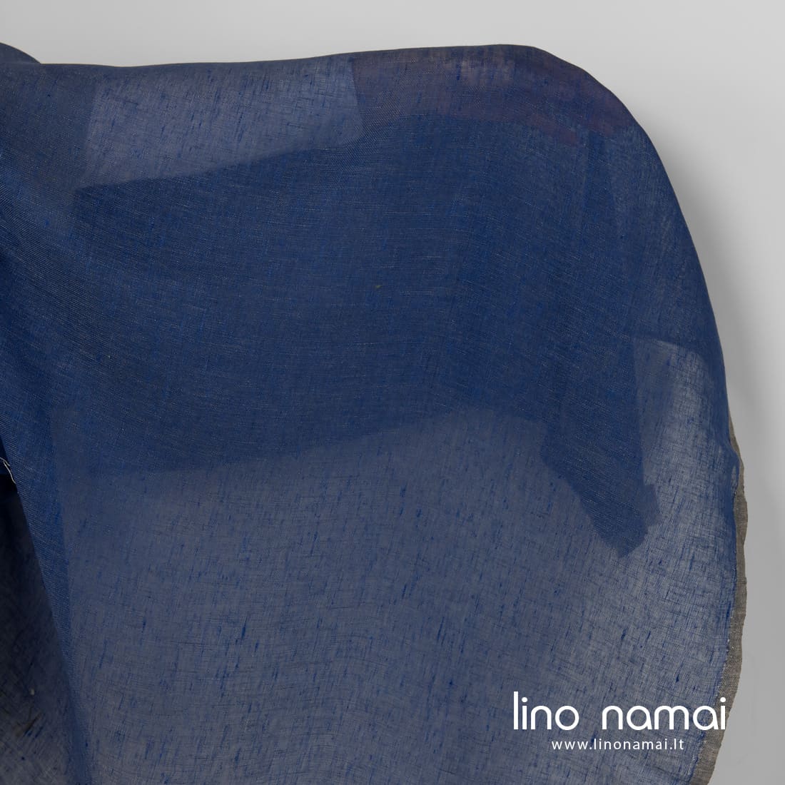 Lininis permatomas audinys mėlynas. Jame kartu su sodriai mėlynais verpalais įaudėme mėlynai pilkus verpalus. Šis linas lengvas, reto pynimo, tinkantis užuolaidoms ir aksesuarams (šalikams, skaroms) siūti.