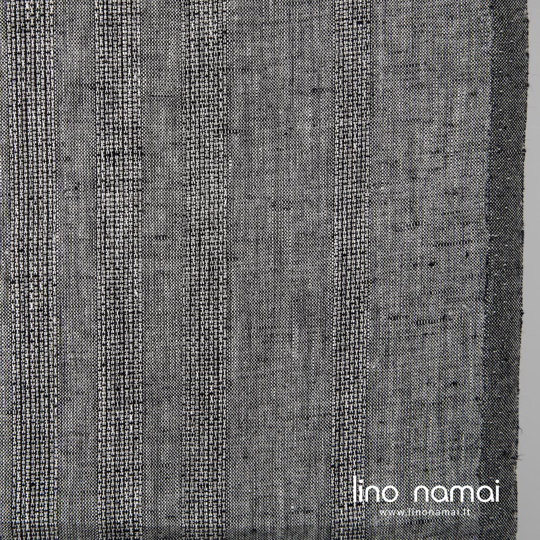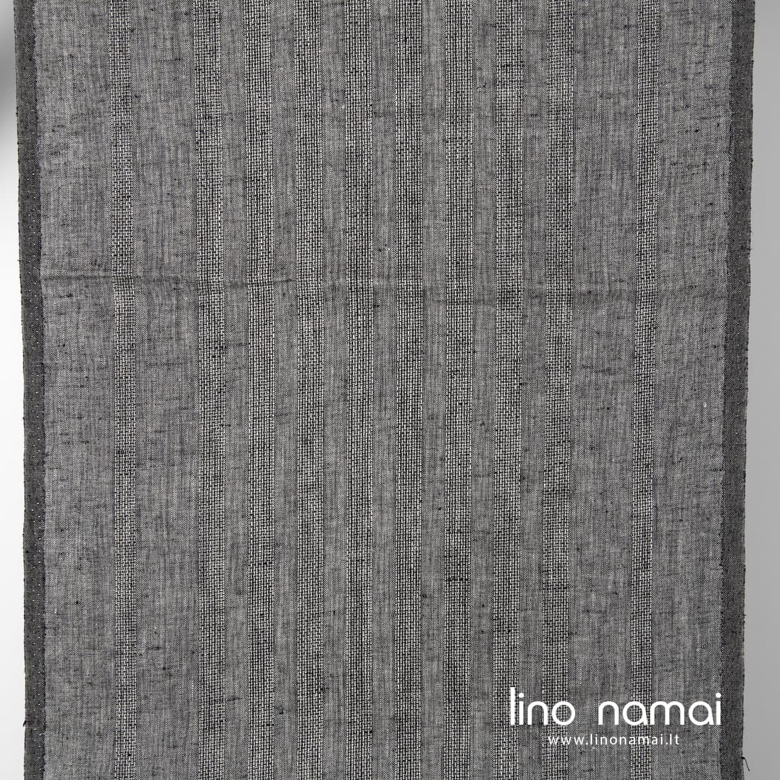 Lininis pilkai juodas audinys vertikaliomis ažūrinėmis ir tankiomis juostelėmis. Šis linas išaustas iš juodų ir natūralios spalvos (nedažytų, rusvai pilkų) verpalų. Tvirtas, tankus, patvarus, puikiai sugeriantis drėgmę rankšluostinis audinys.