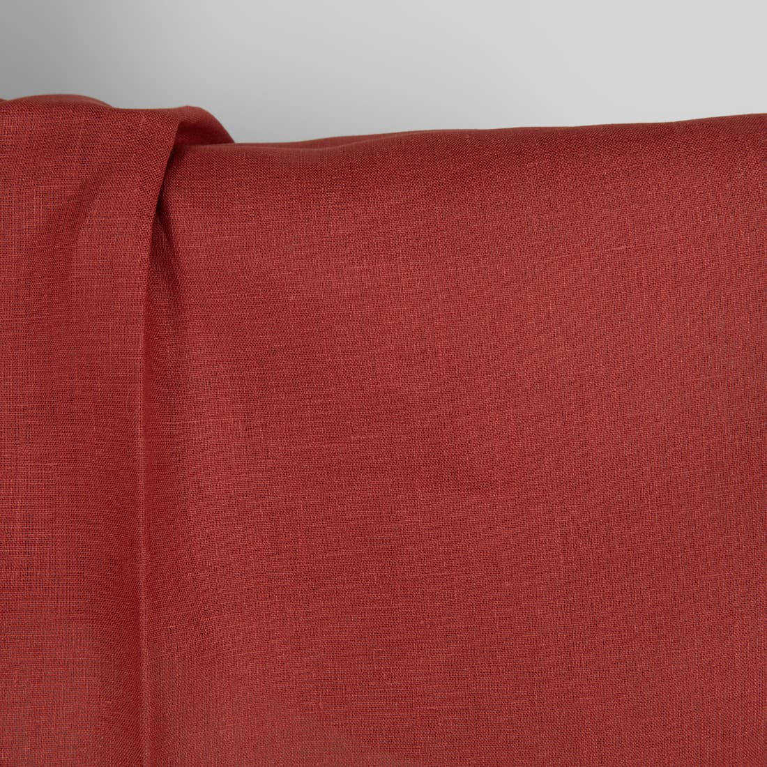 Vidutinio tamsumo, intensyvumo raudonos spalvos 100% lino audinys. Spalva primena granato raudonumą. Audinys tvirtas ir tankus, vidutinio storio. Tinka daugeliui gaminių siūti: patalynės užvalkalams, drabužiams, užuolaidoms.
