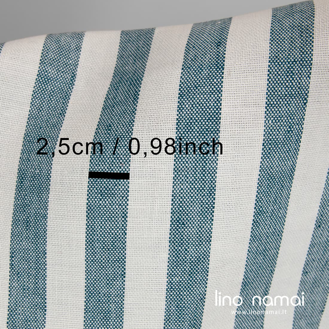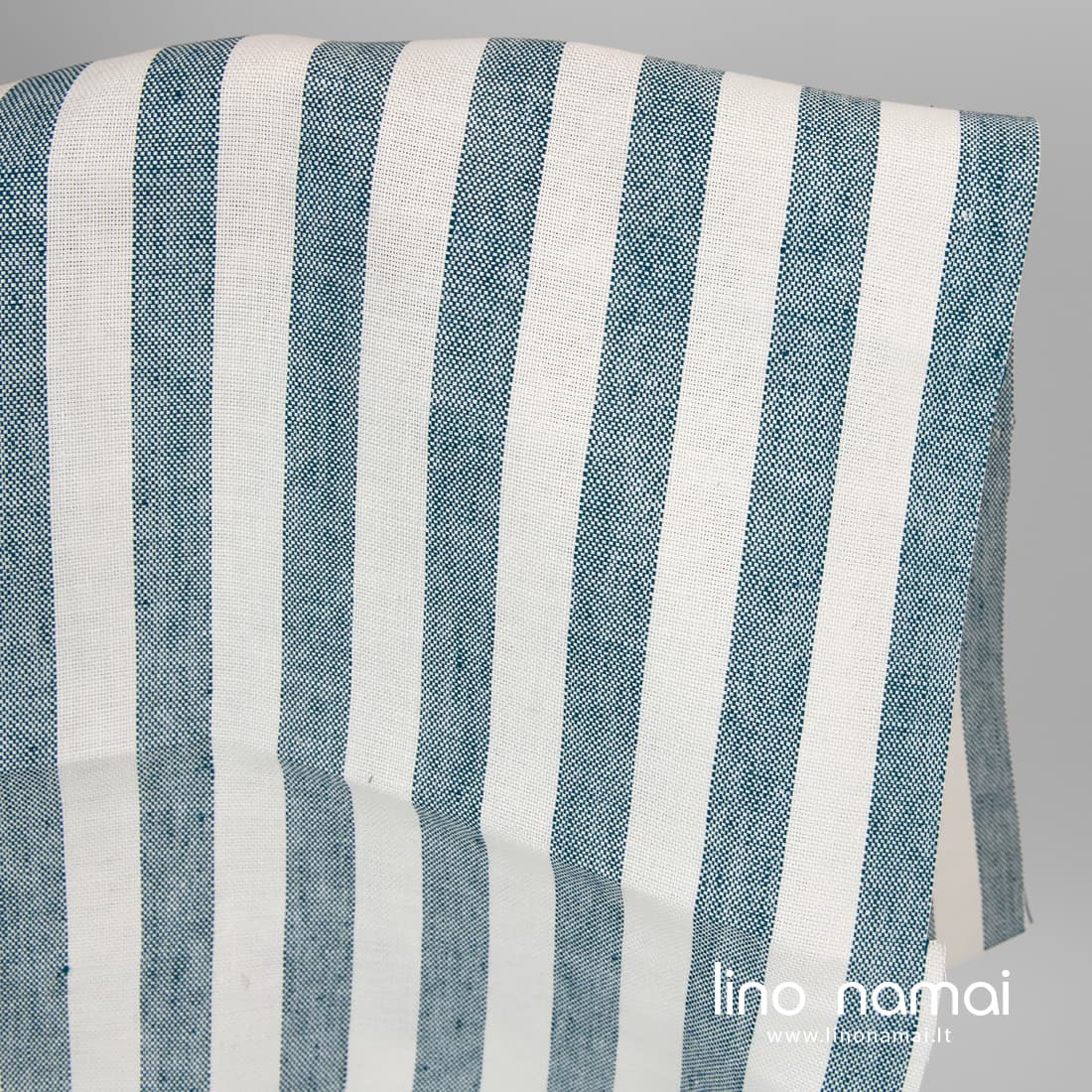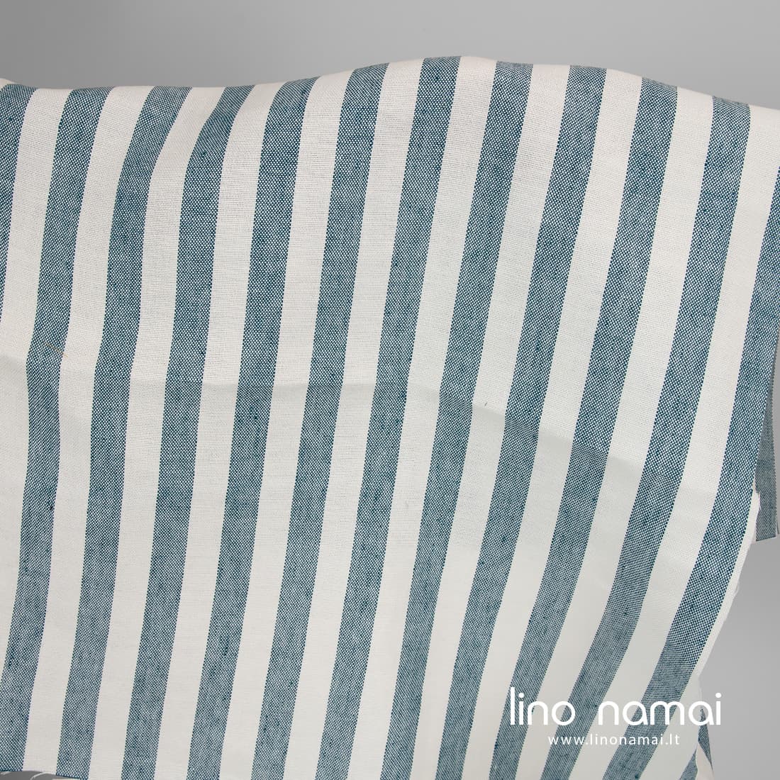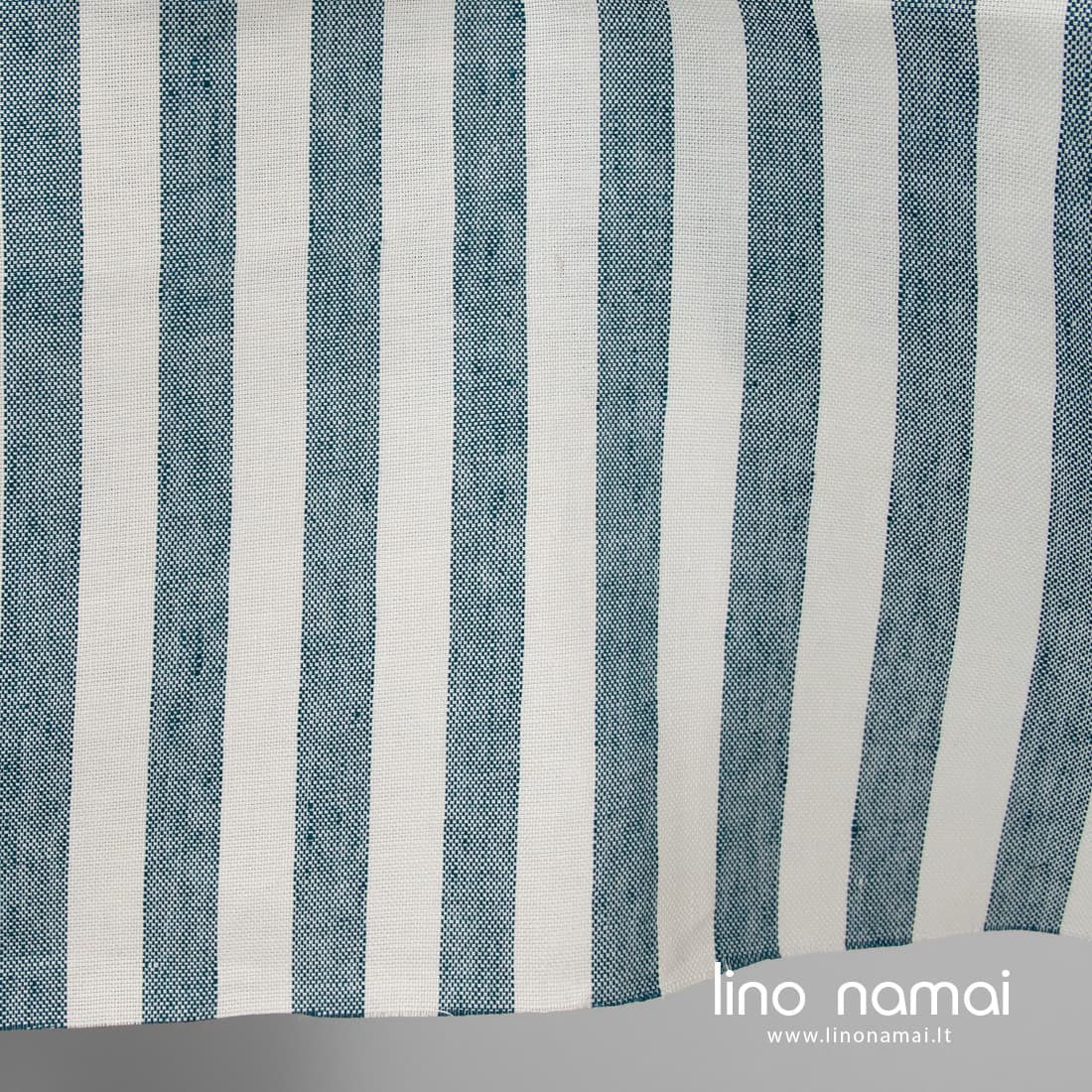 Lininis tvirtas audinys vertikaliomis tamsios turkio spalvos juostomis pieno baltumo (gelsvai baltame) fone. Storas, tankus, sunkus linas, austas „Panamos“ raštu.