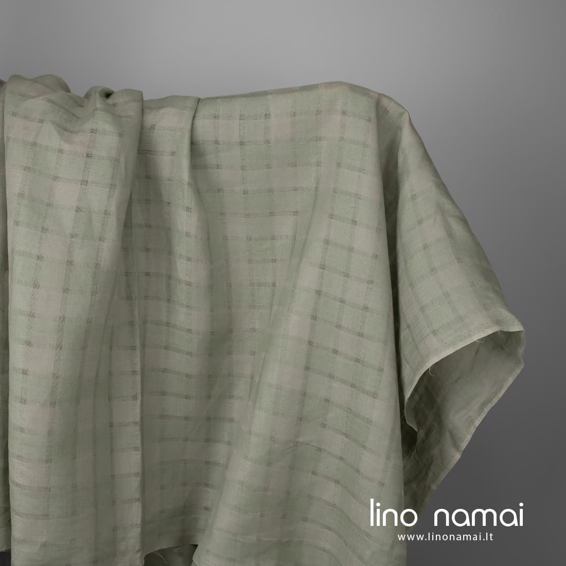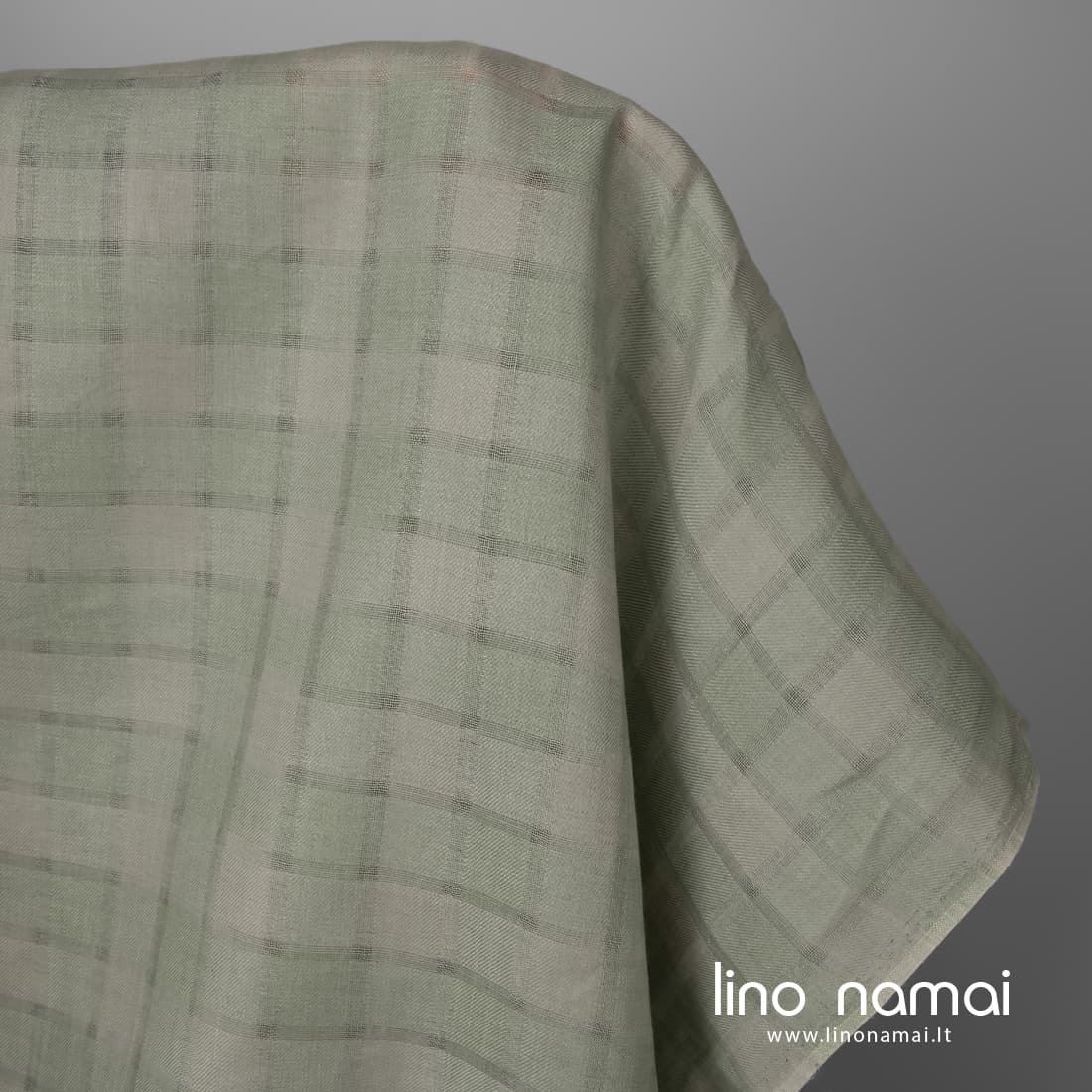• Lino audinys permatomomis juostelėmis išaustas iš žalsvų ir pilkų verpalų ruoželio raštu