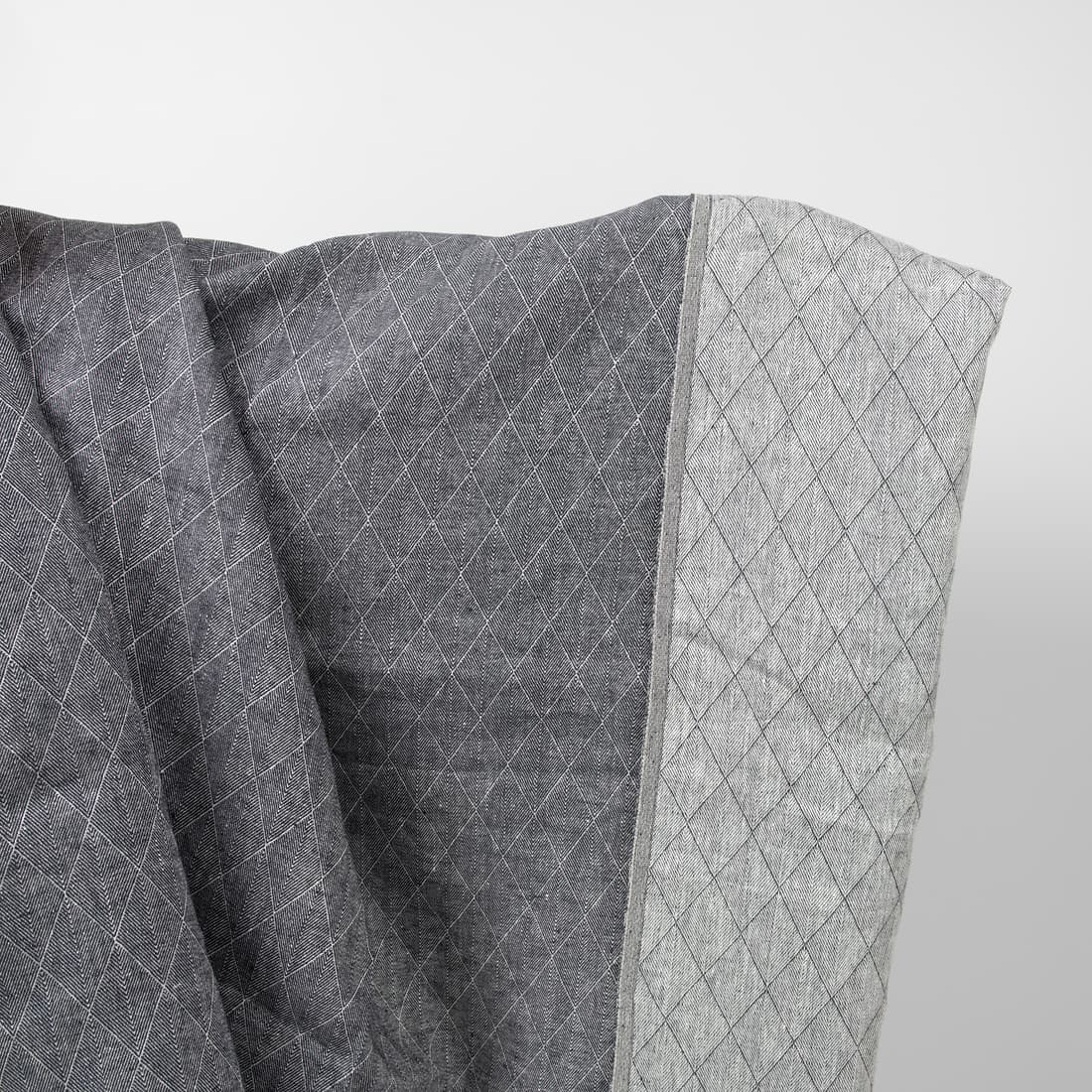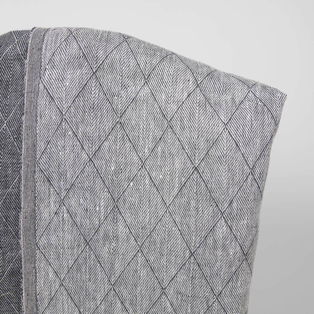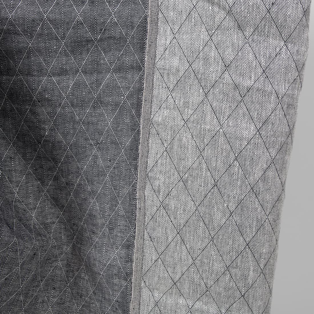 Žakardinis lininis audinys, austas ruožuotų rombų raštu naudojant tamsiai mėlynus ir baltus verpalus. Audinys yra dvipusis: vienoje pusėje vyrauja mėlyna, o kitoje - balta spalva. Tvirtas, storas, sunkus audinys.