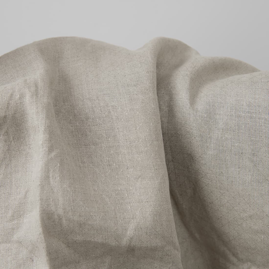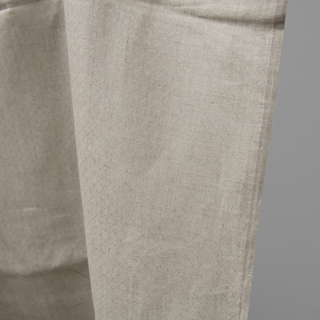Pilkos spalvos, lengvas, vidutinio tankumo, rombo raštu austas, lininis audinys. Lengvas lininis audinys gali būti labai plačiai ir įdomiai panaudotas, tiks siūti stalo gaminius, patalynę, užuolaidas, drabužius ir įvairius aksesuarus.