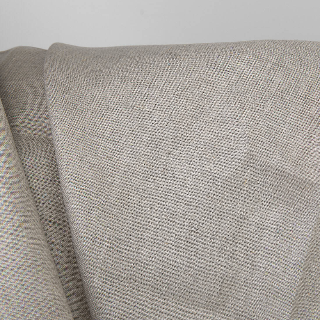 Pilkos natūralios spalvos lininis audinys, austas iš nedažytų verpalų. Tankus, tvirtas ir patvarus audinys. Tinkantis įvairiai namų tekstilei, patalams, drabužiams bei aksesuarams siūti.