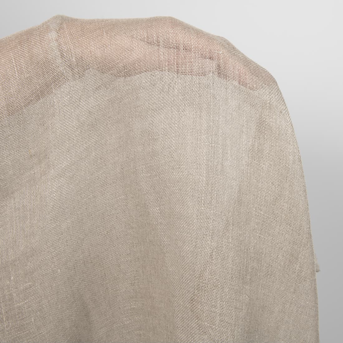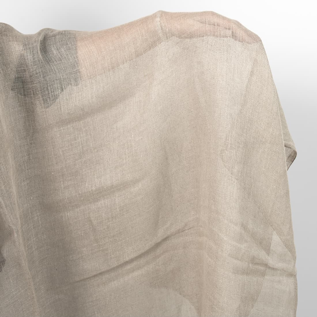 Lininis pilkos spalvos audinys. Ypatingai retas, permatomas, plonas ir lengvas. Puikiai tiks šalikams, aksesuarams, užuolaidėlėms, interjero dekorui.