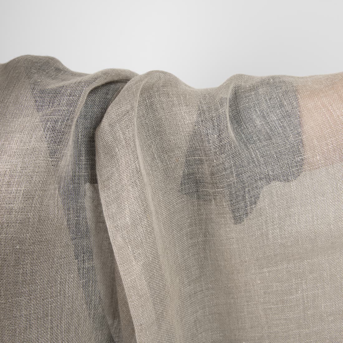 Permatomas pilkos spalvos lininis audinys