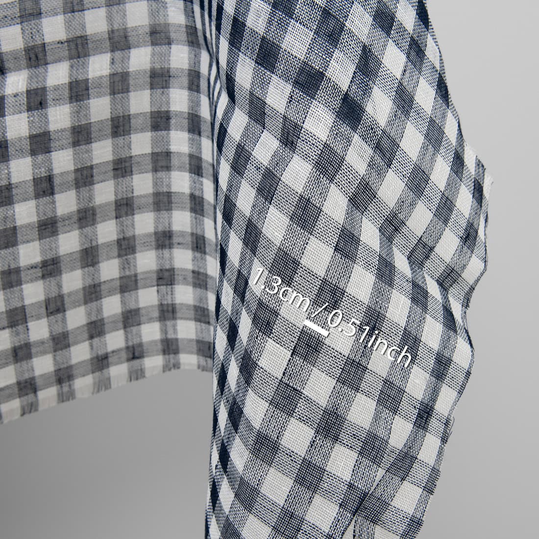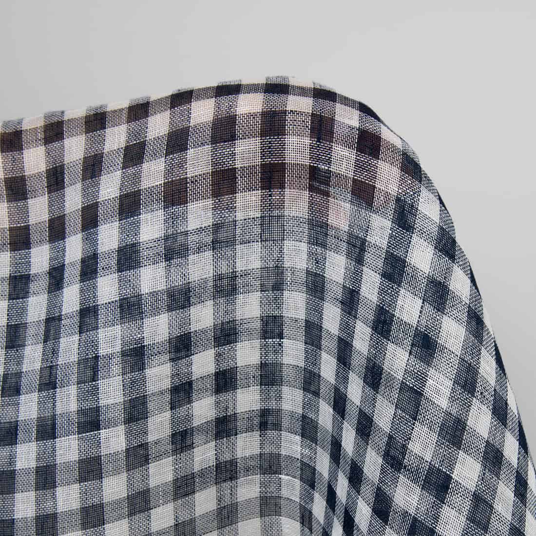 Permatomas, itin retai austas gryno lino audinys su mėlynai juodos ir pieno baltumo (gelsvai baltos) spalvos langeliais. Audinys yra lengvas, plonas bei peršviečiamas, tad labiausiai tinkamas dieninių užuolaidų ir įvairių aksesuarų siuvimui.