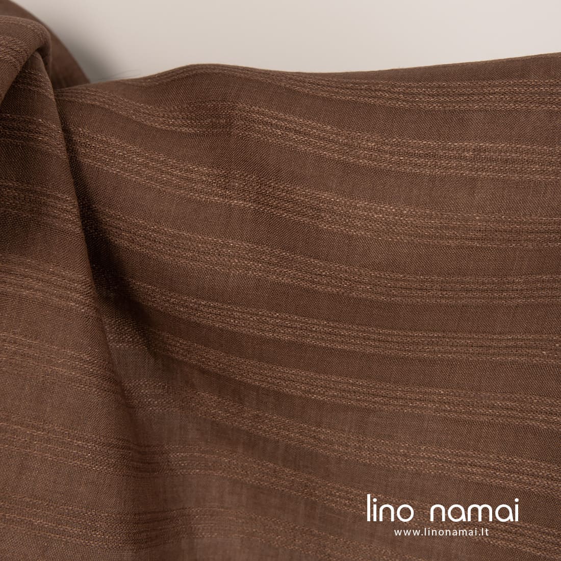 • Rudas lininis audinys su horizontaliomis tankesnėmis juostelėmis