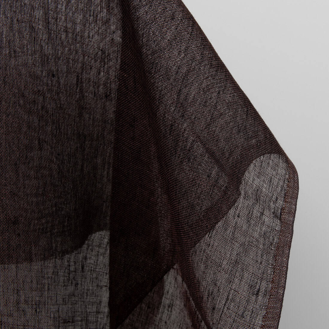 Tamsiai rudas lengvas, permatomas, retai austas 100% lininis audinys. Šiam audiniui naudoti dviejų spalvų lininiai verpalai: rudi ir juodi.
