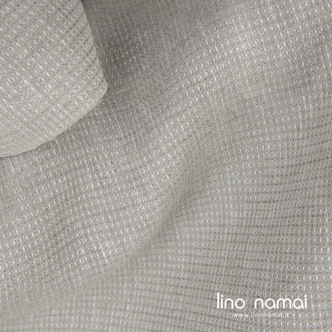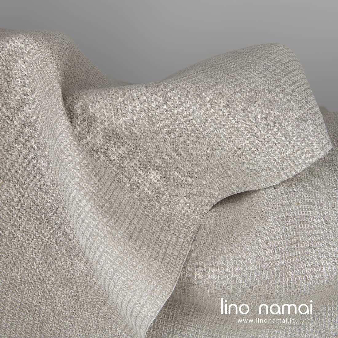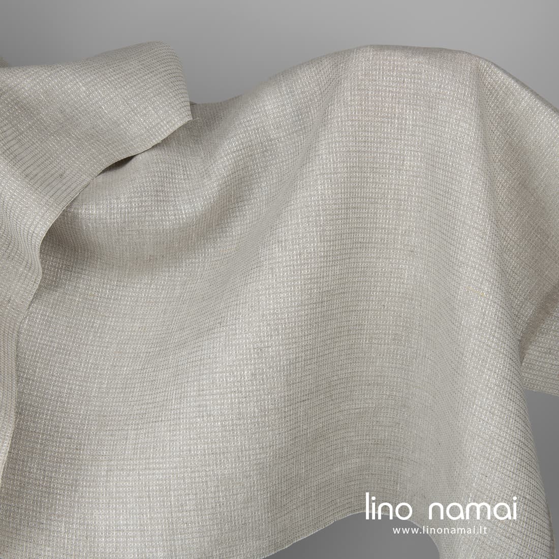 Šviesiai pilkas smulkiais „vafliniais“ langeliais lininis audinys, kurį ausdami naudojome pilkus (lino spalvos) ir baltus lininius verpalus. Tankus, tvirtas, vidutinio sunkumo audinys išskalbtas taps minkštas, purus, puikiai sugers drėgmę.
