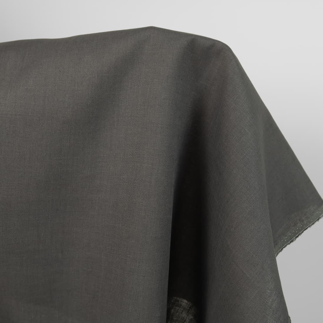 Tamsiai pilkos spalvos gryno lino audinys. Šis kokybiškas, ganėtinai sunkus bei tankiai austas audinys puikiausiai tiks siūti drabužiams, krepšiams, stalo ir virtuvės gaminiams ir įvairiems aksesuarams.