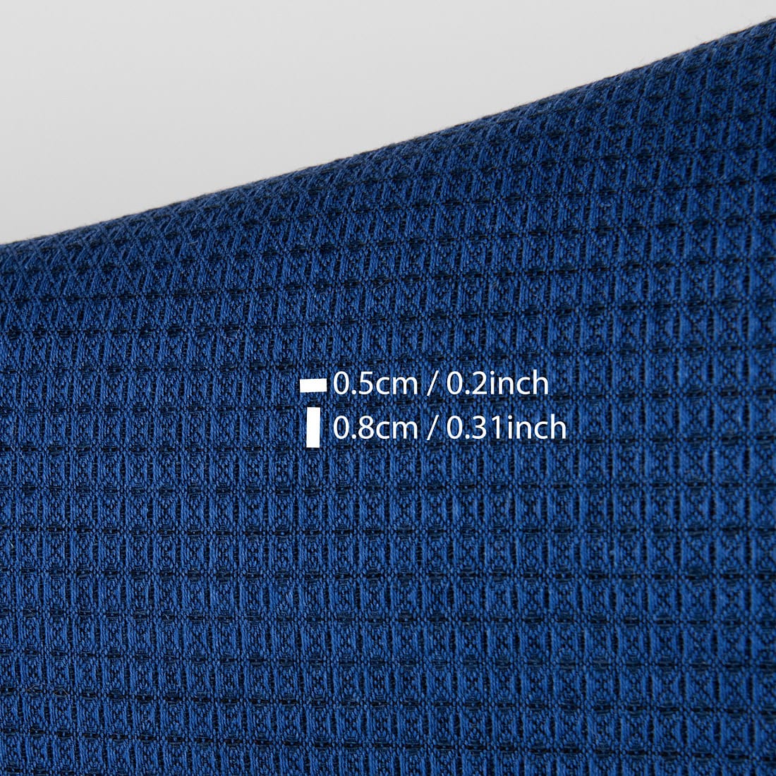 • Puslininis vilnos audinys tamsiai mėlynas ir juodas „vaflinis“, su matmenimis