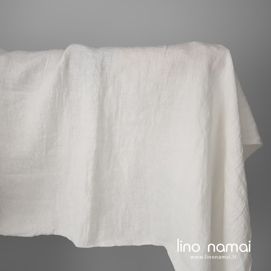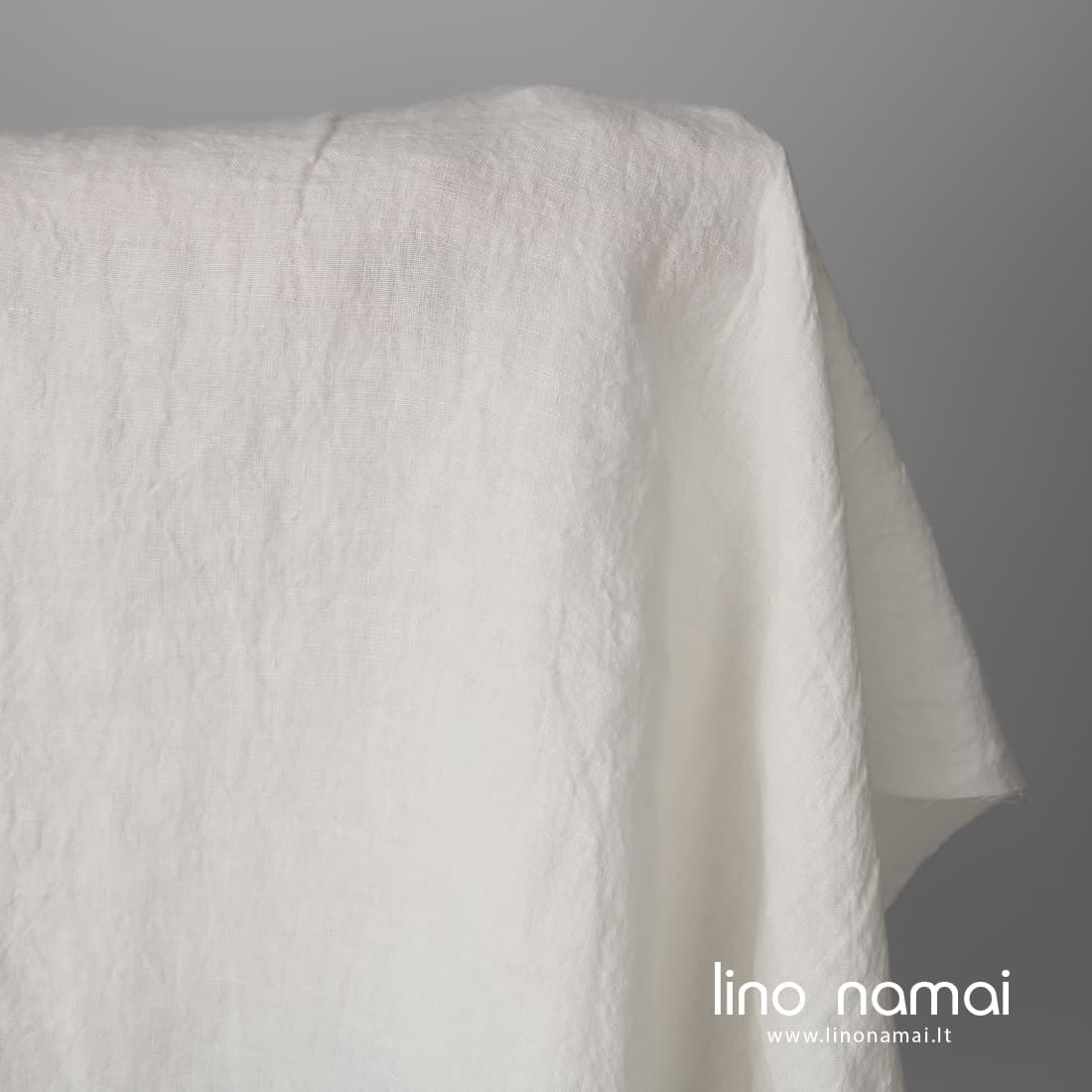 Lininis audinys pieno spalvos (gelsvai baltas) yra apie 295cm pločio. Lengvas, tvirtas, tankus, minkštas (skalbtas specialia technologija). Nebesitrauks pakartotinai skalbiamas.