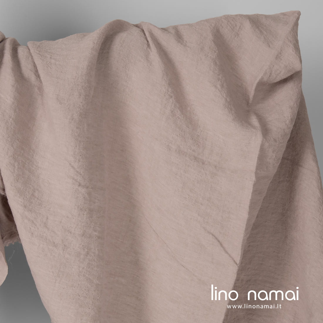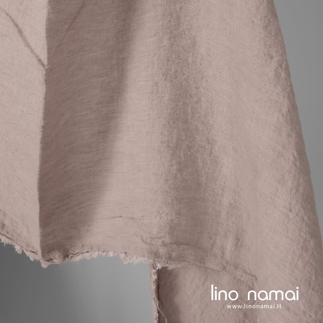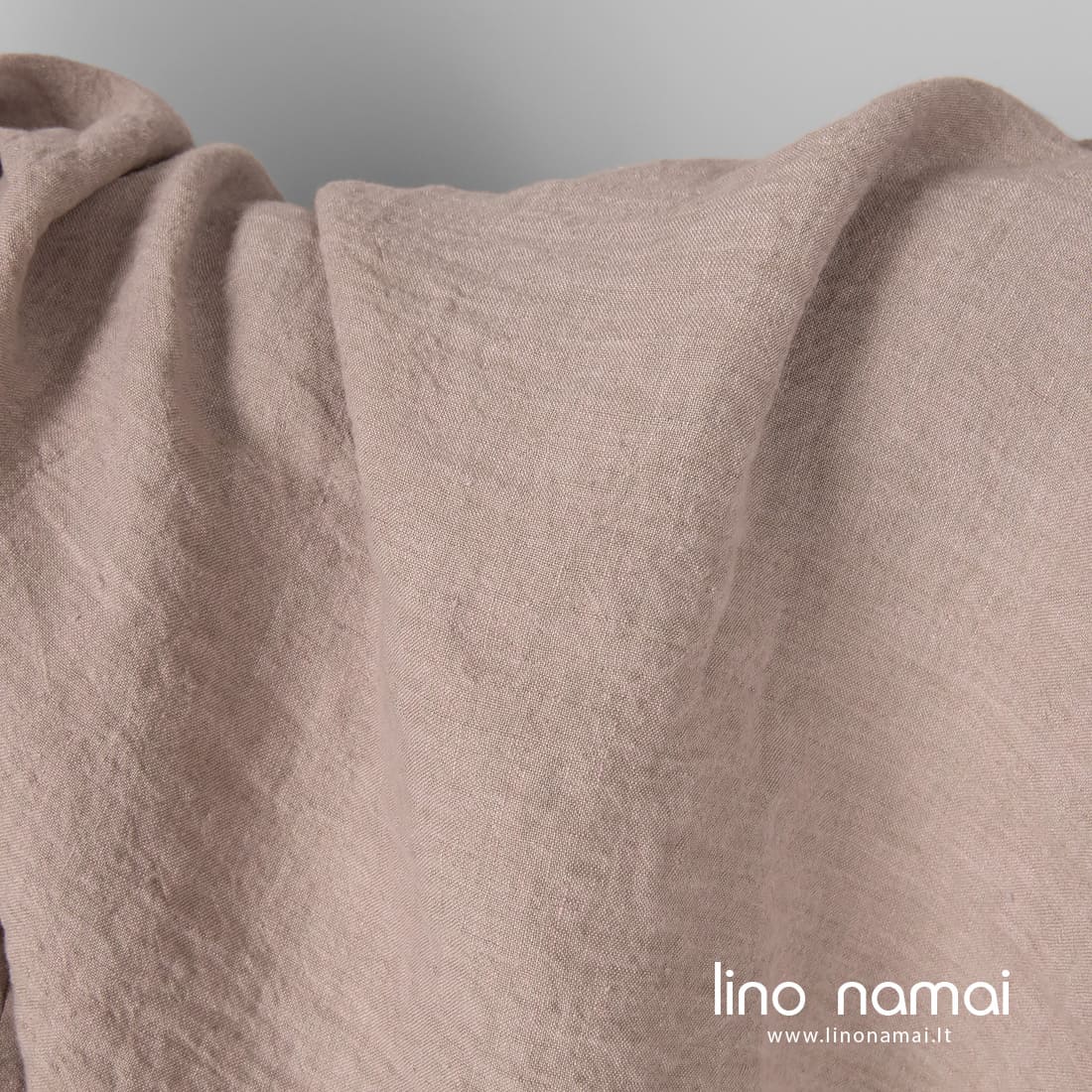 Lininis audinys rausvai pilkas yra melanžinis: jame suausti švelniai violetiniai (šviesios alyvinės spalvos) ir rusvai pilki lino verpalai. Audinys lengvas, tvirtas, vidutinio storio. Jį išskalbėme specialia technologija, kad suteiktumėme minkštumo, švelnumo, kad skalbiamas nebesitrauktų. Jei ieškote plataus lino patalynei, užuolaidoms, staltiesėms siūti, šis audinys tam tinka idealiai.