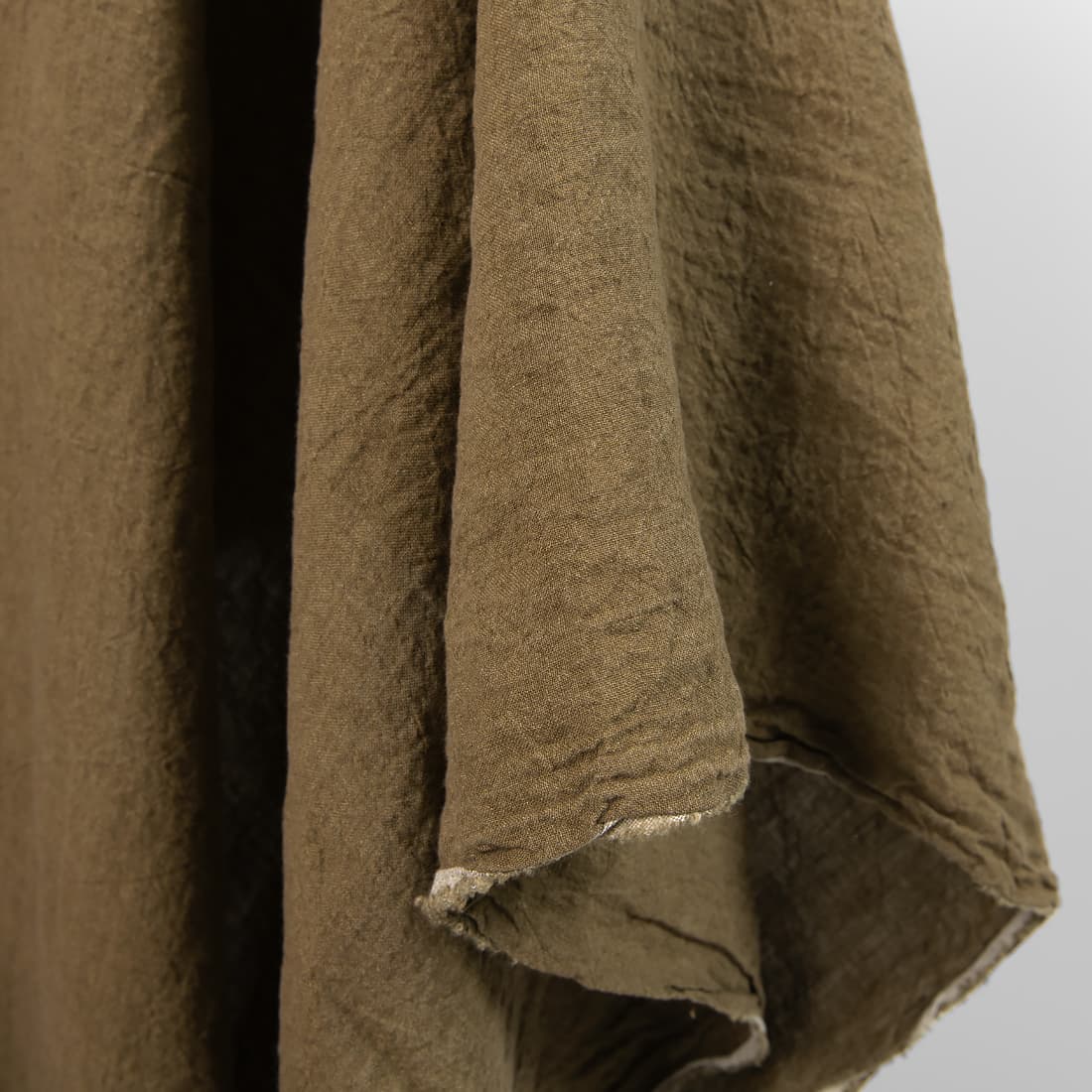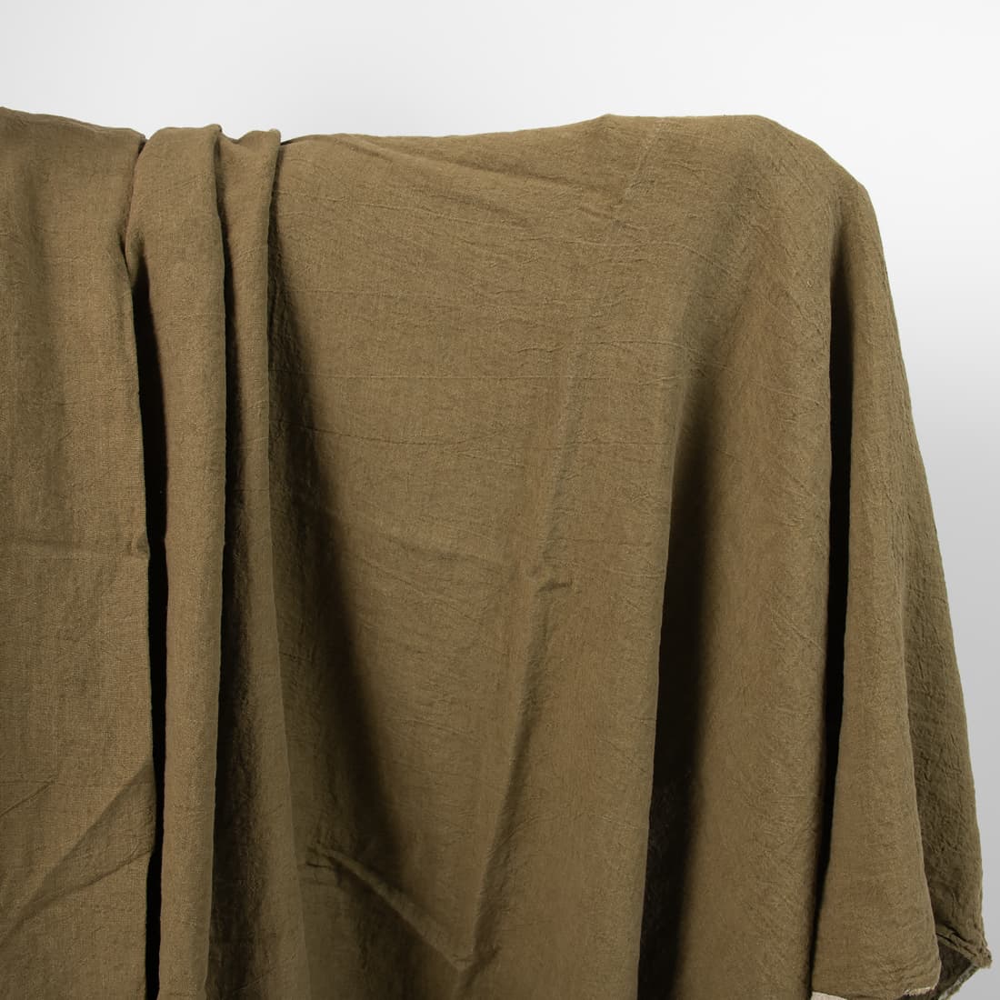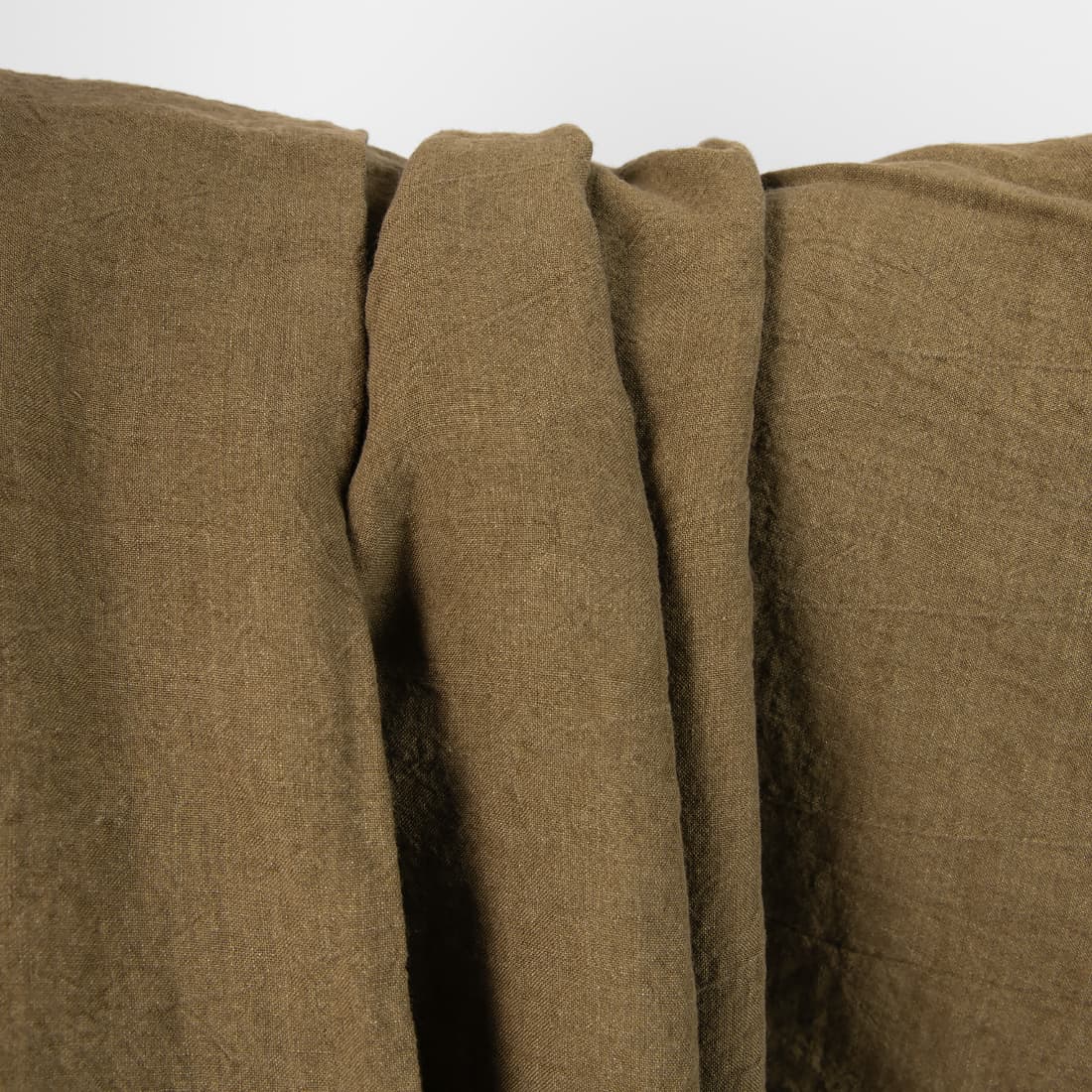 • Lininis audinys samanų rudos spalvos platus skalbtas minkštas švelnus