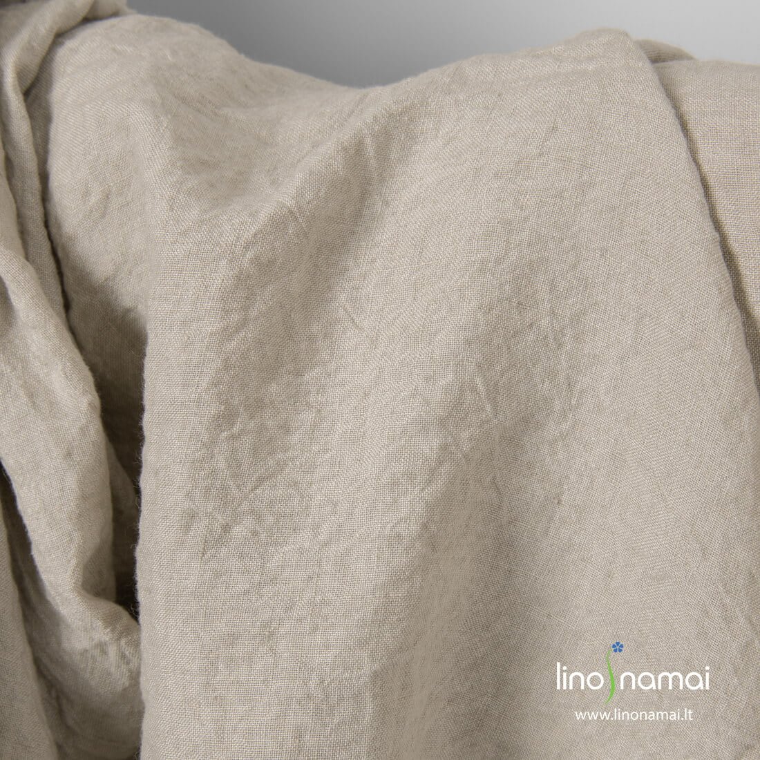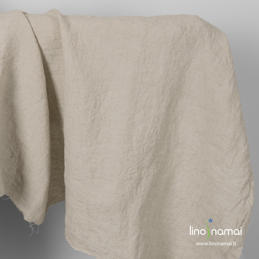 Lininis audinys smėlio spalvos (švelniai rusvas) platus. Skalbtas specialia technologija, todėl nepaprastai minkštas, švelnus, malonus odai. Tvirtas, tankus, vidutinio storio. Tinka aksesuarams, drabužiams, virtuvės gaminiams, bet labiausiai patalynei, stalo gaminiams, užuolaidoms - gaminiams, kuriems reikia didelio pločio audinio.