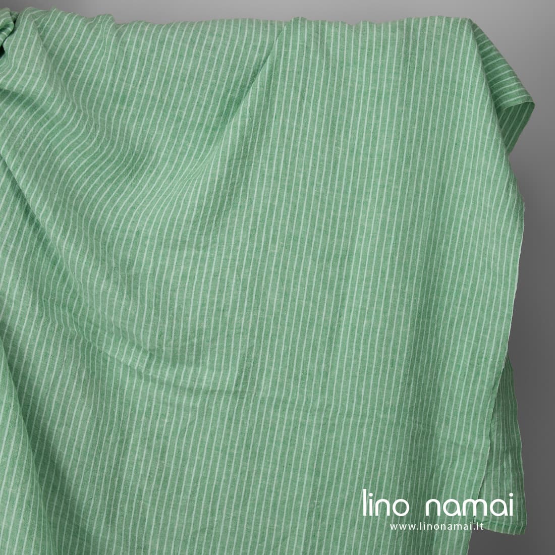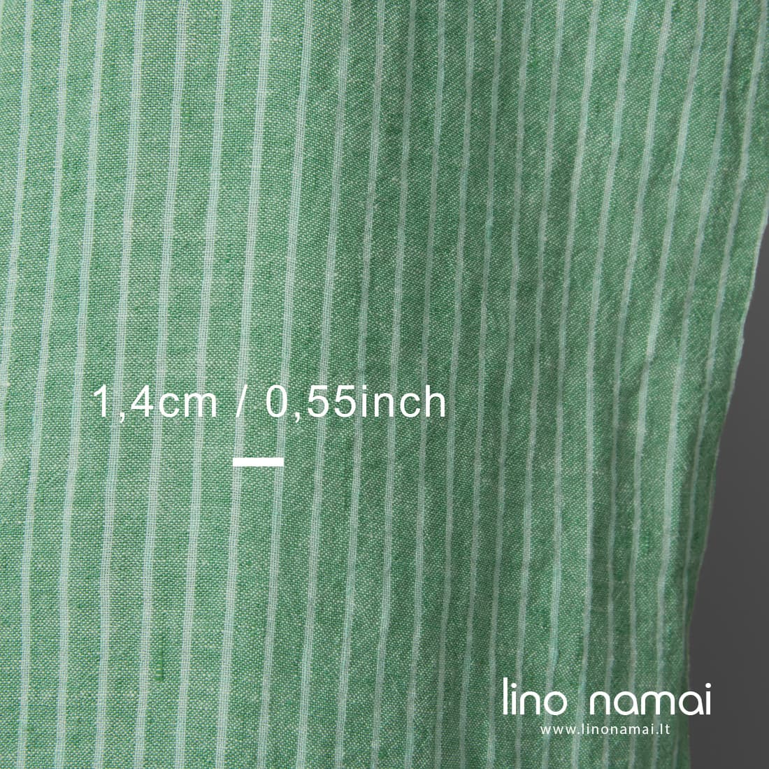 • Lininis audinys žaliai dryžuotas platus skalbtas tinka drabužiams, patalynei, užuolaidoms, staltiesėms siūti