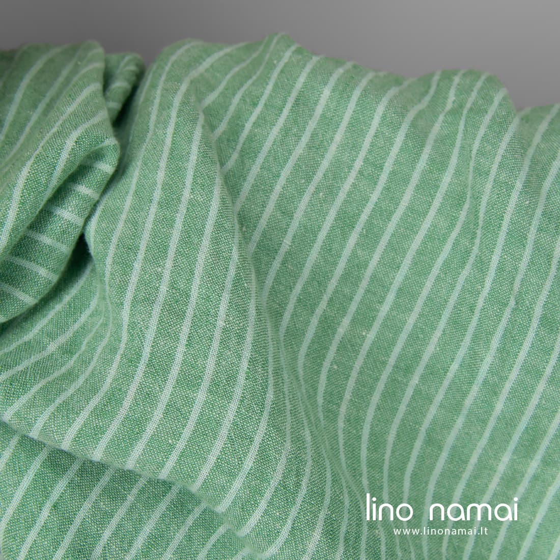 Lininis audinys žaliai dryžuotas platus skalbtas