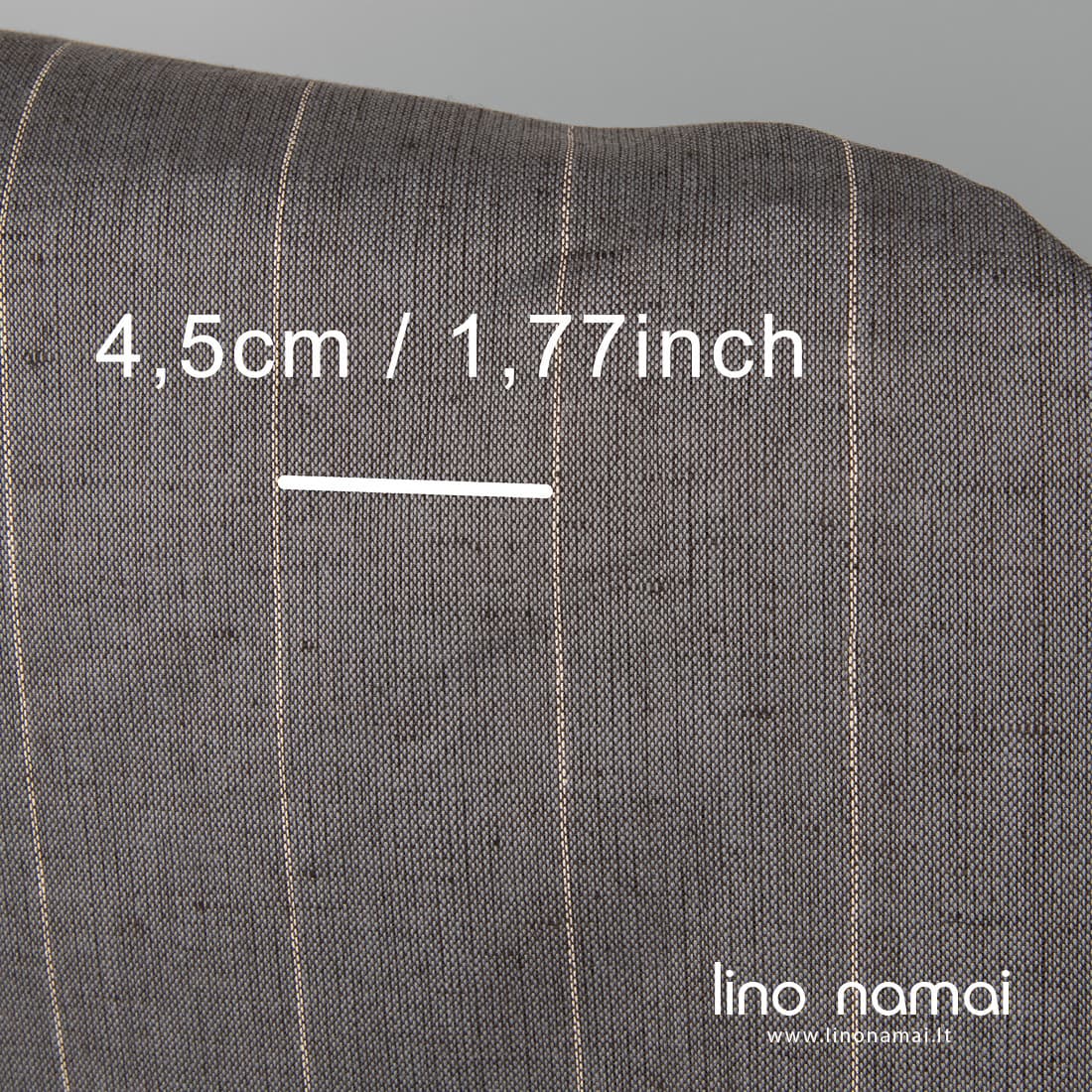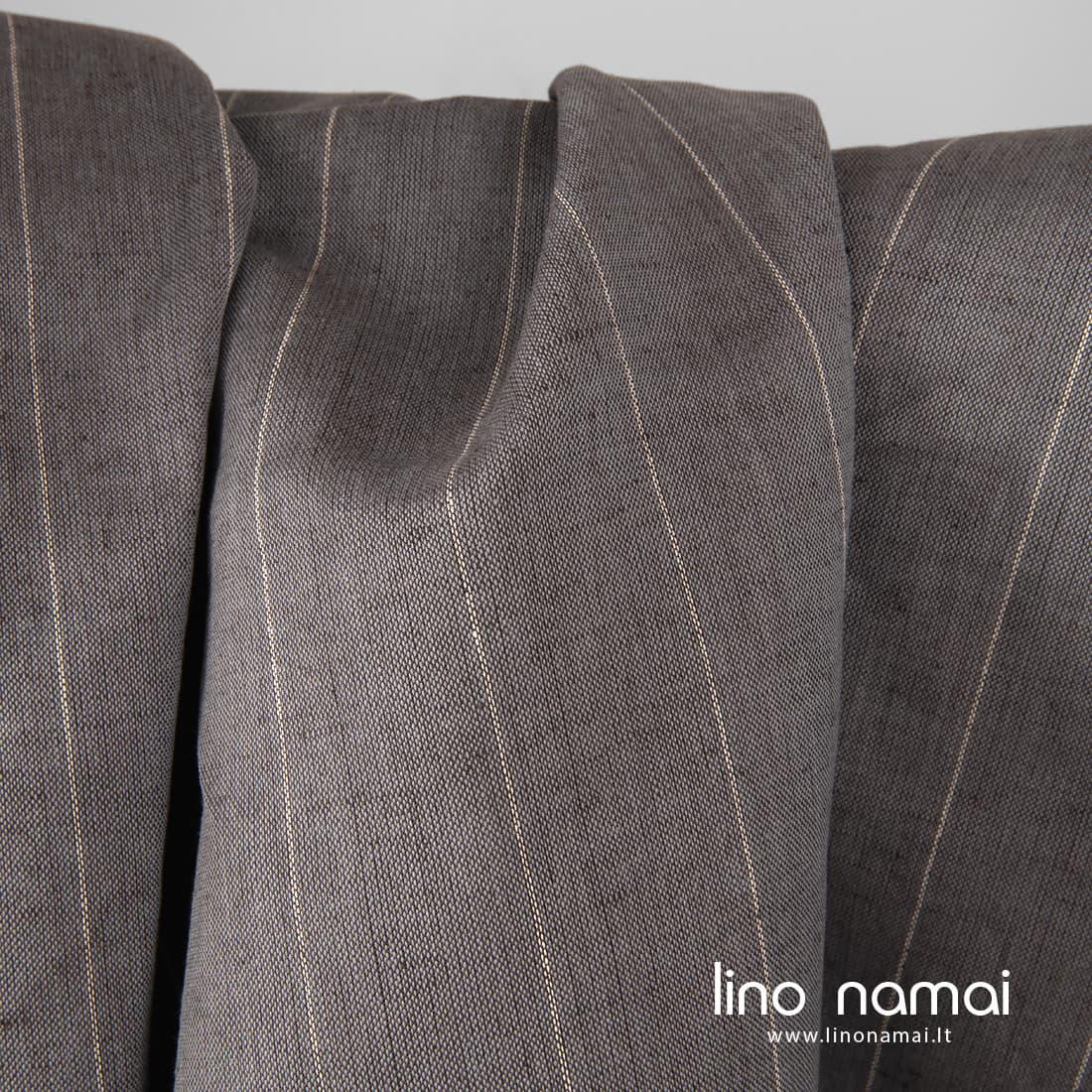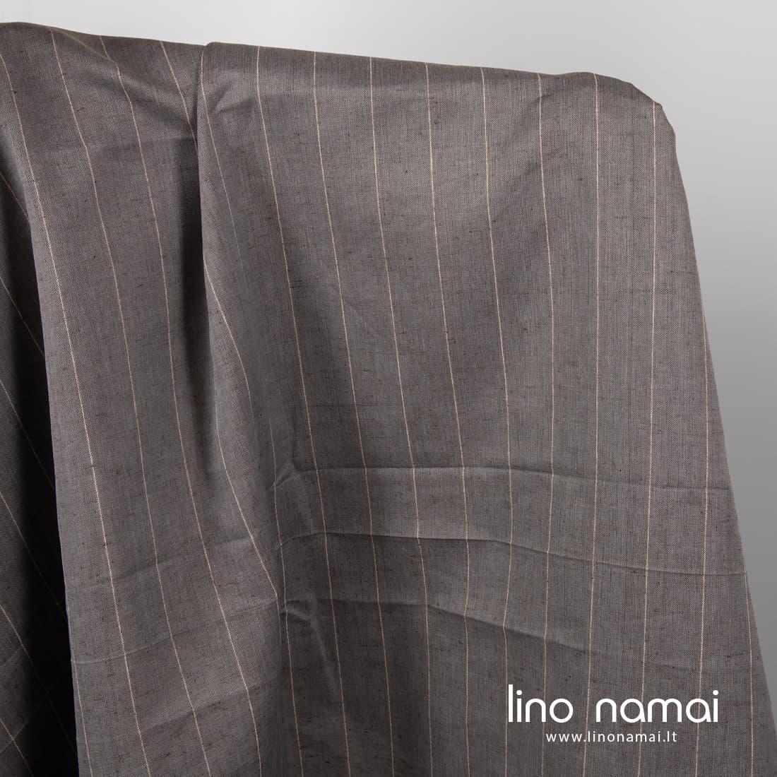 Platus pilkas dryžuotas puslininis audinys, išaustas iš melsvai pilkų medvilnės ir tamsiai pilkų lino verpalų, pagyvintas siaurais vertikaliais baltų verpalų dryžiukais. Tvirtas, tankus, vidutinio storio. Dėl savo pločio (net 280cm!) tinka didelėms staltiesėms, užuolaidoms, patalynei siūti. Aišku, galite siūti ir kitą namų tekstilę ar drabužius - šis audinys labai universalus, subtiliai elegantiškas.