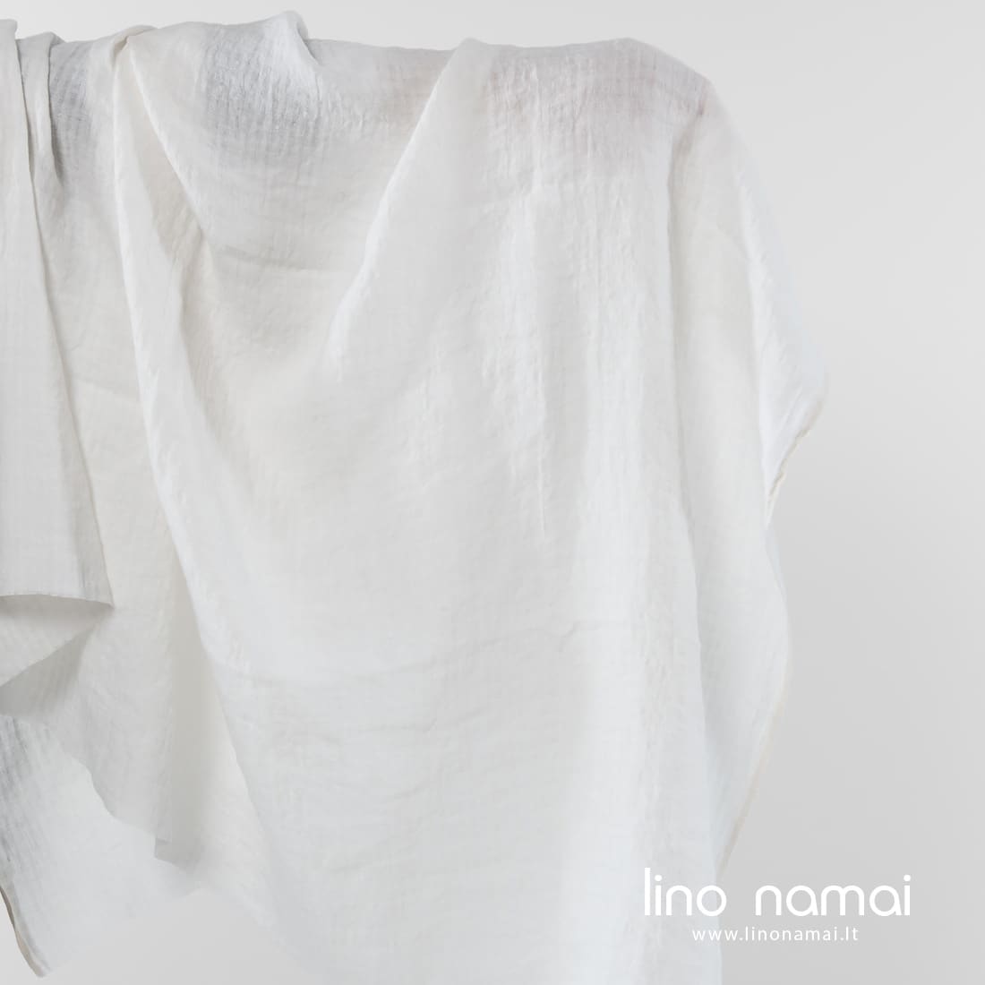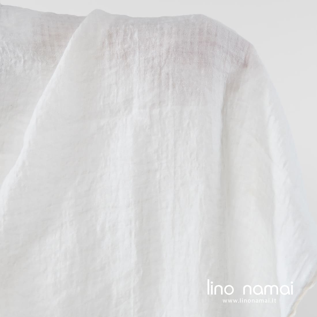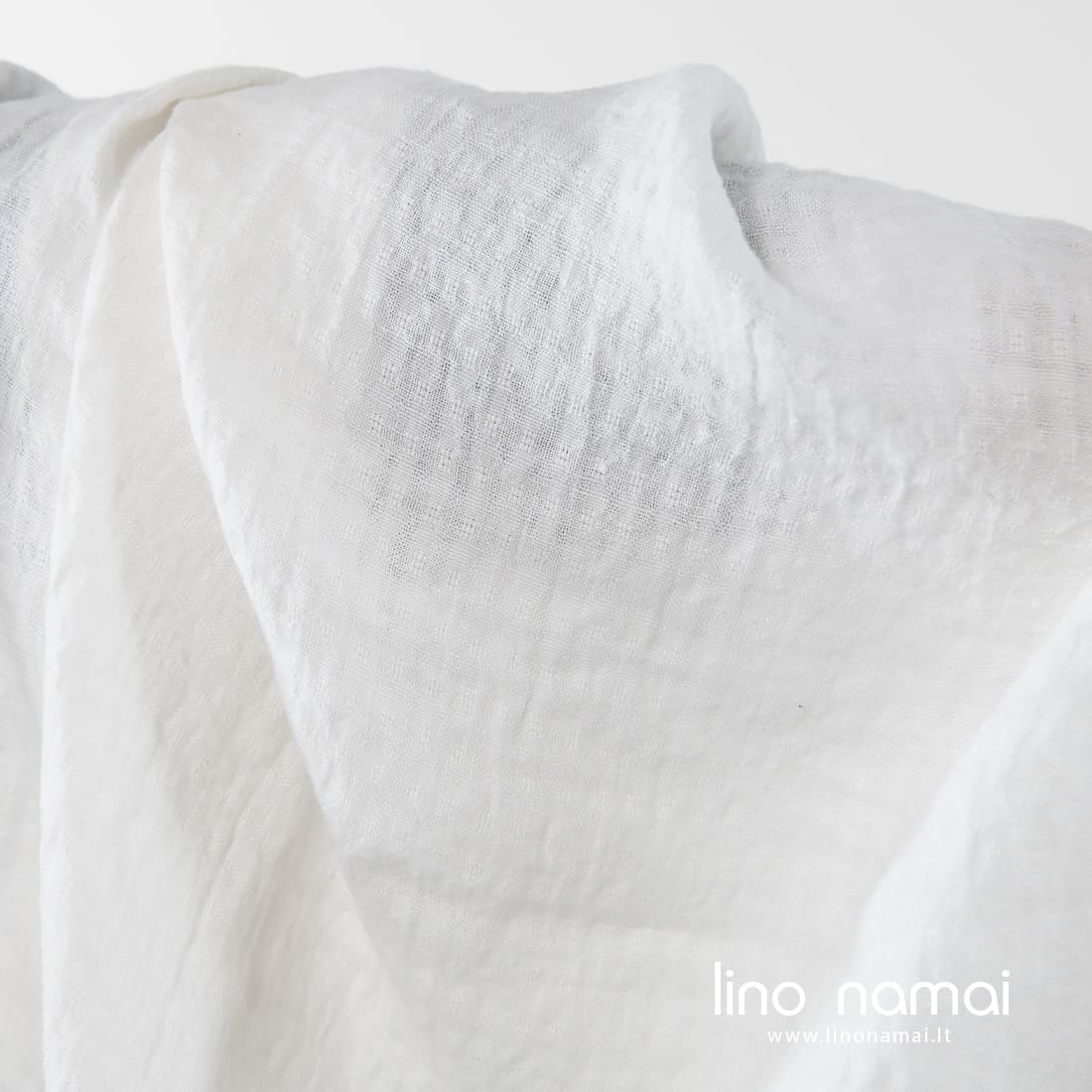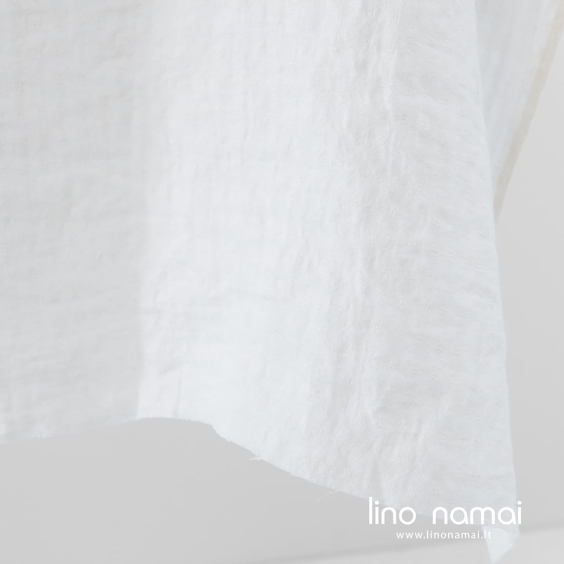 Pieno baltumo (gelsvai baltas) lininis audinys su įaustais mažais langeliais. Lengvas, tvirtas, tankus. Specialiai skalbtas, todėl minkštas, švelnus, draugiškas odai.