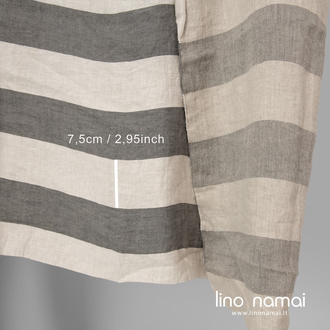 Pastaba: Audžiant šį audinį naudoti natūralios spalvos (nedažyti) lininiai verpalai, todėl Jūsų gauto audinio atspalvis gali šiek tiek skirtis nuo matomo nuotraukoje. Užsisakant pakartotinai atspalvis taip pat gali skirtis.