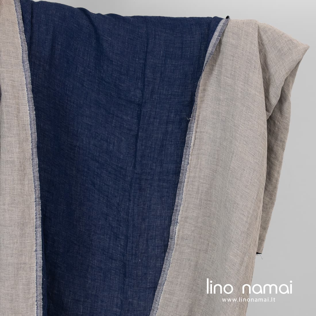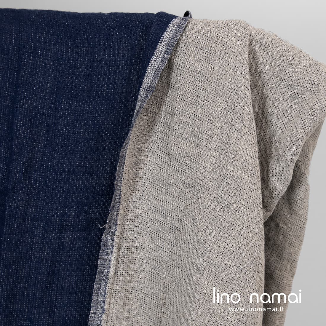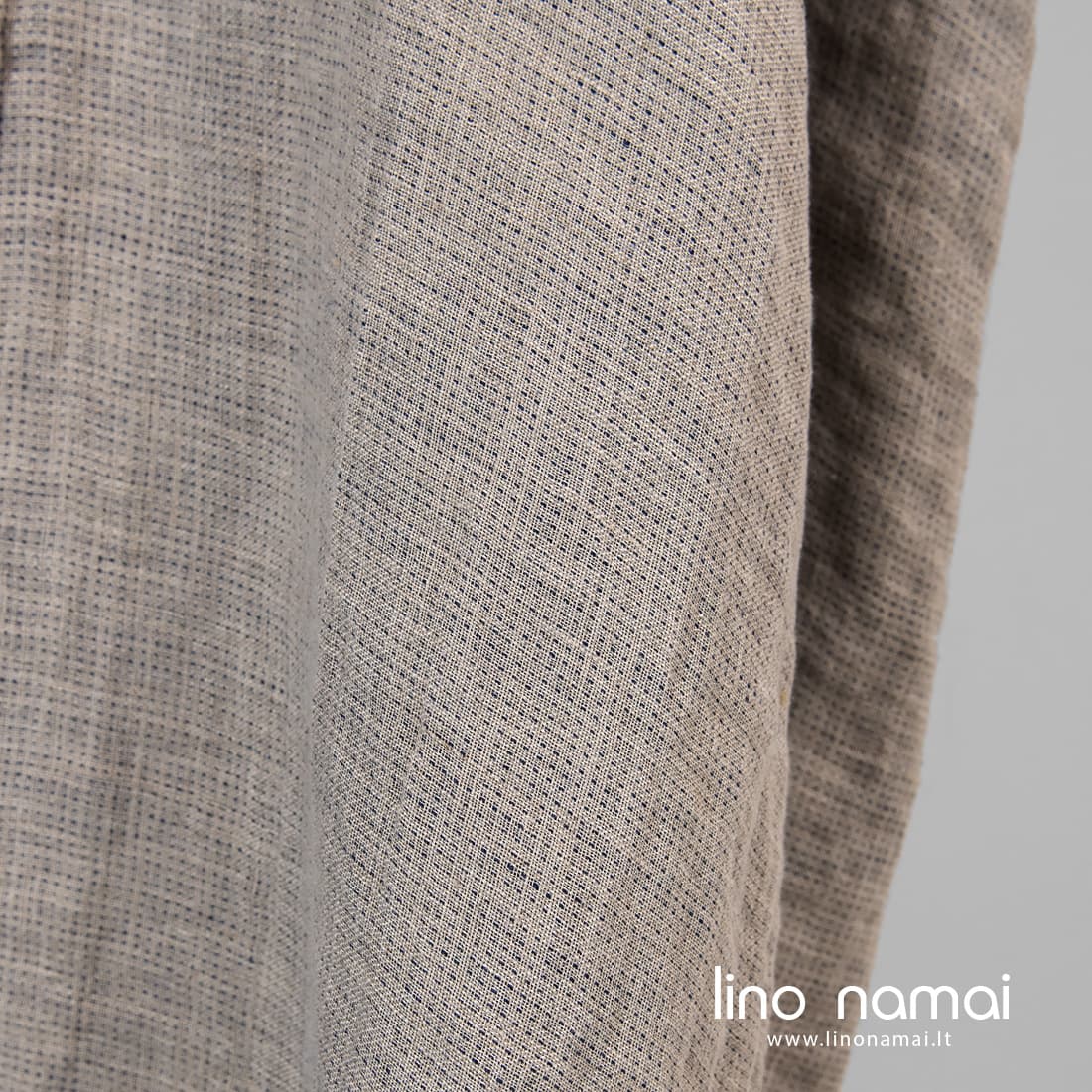 Pastaba: Audžiant šį audinį naudoti natūralios spalvos (nedažyti) lininiai verpalai, todėl Jūsų gauto audinio atspalvis gali šiek tiek skirtis nuo matomo nuotraukoje. Užsisakant pakartotinai atspalvis taip pat gali skirtis.