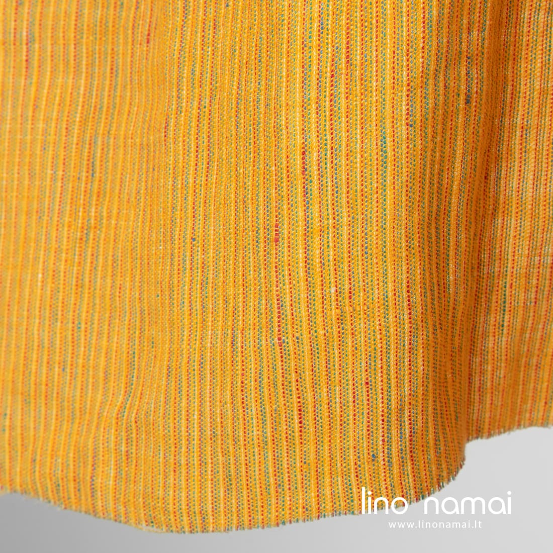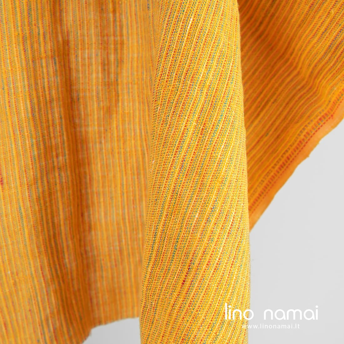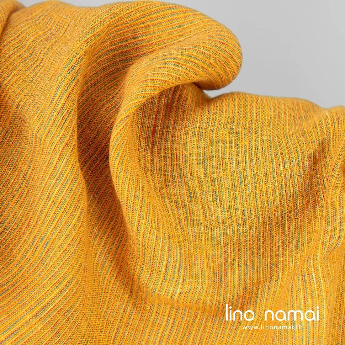 • Lininis audinys geltonais dryžiukais skalbtas drabužiams, namų tekstilei siūti