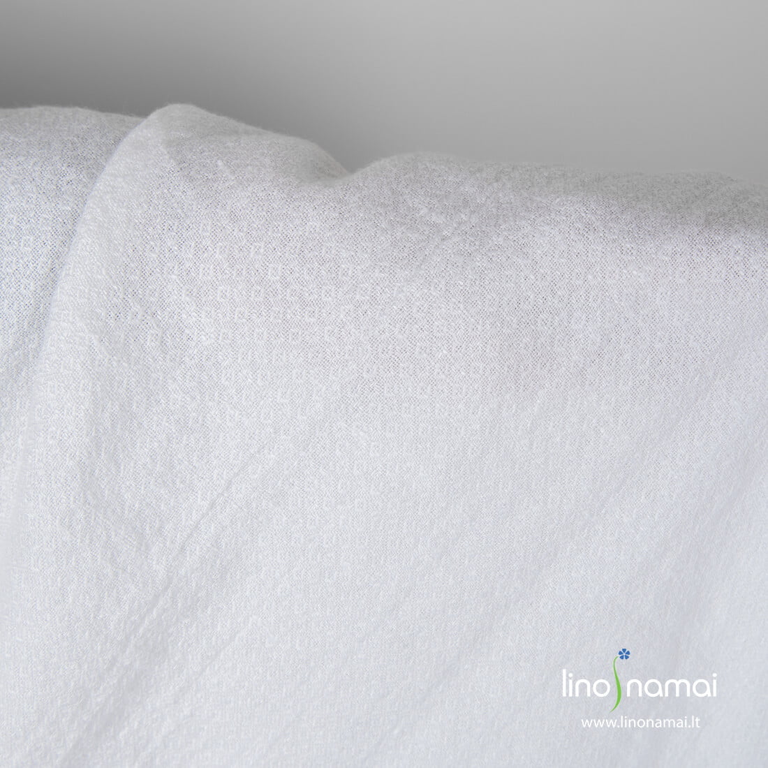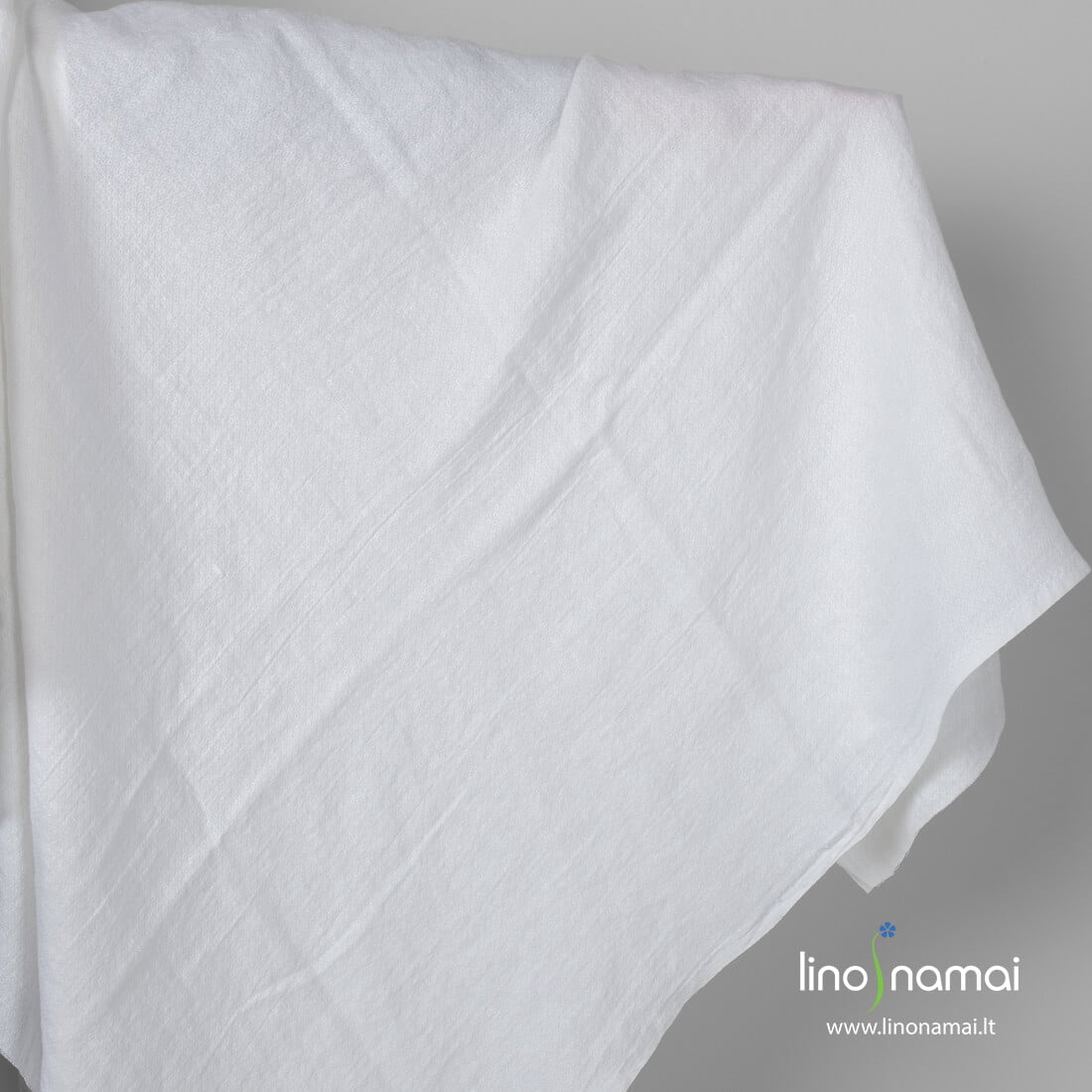 Lininis audinys austas mažais rombais, ryškiai baltas. Skalbtas specialia technologija, todėl nepaprastai minkštas, švelnus. Iš šio tvirto, tankaus audinio galite siūti drabužius, patalynę, užuolaidas, stalo, virtuvės gaminius.