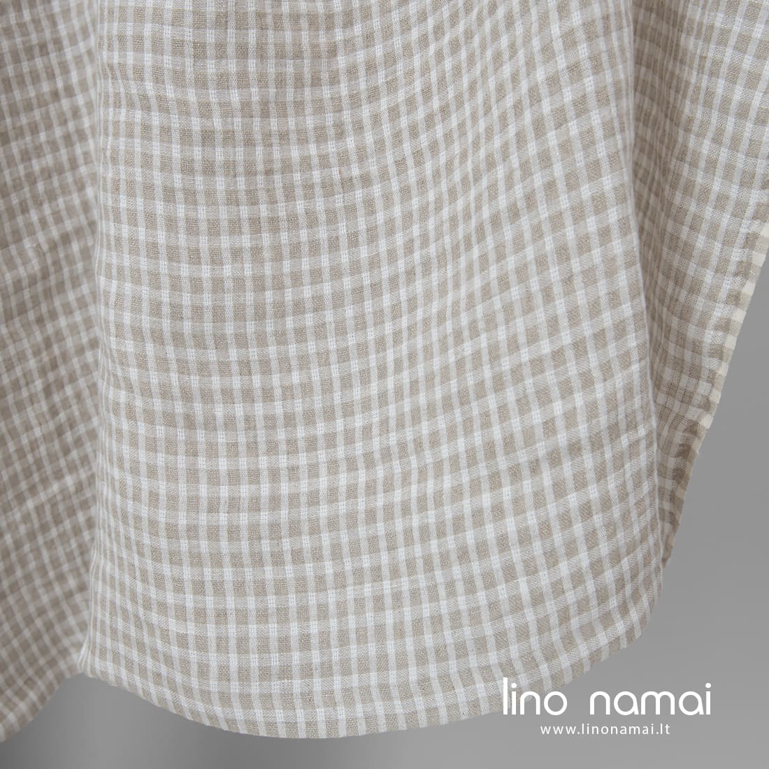 Pastaba: Audžiant šį audinį naudoti natūralios spalvos (nedažyti) lininiai verpalai, todėl Jūsų gauto audinio atspalvis gali šiek tiek skirtis nuo matomo nuotraukoje. Užsisakant pakartotinai atspalvis taip pat gali skirtis.