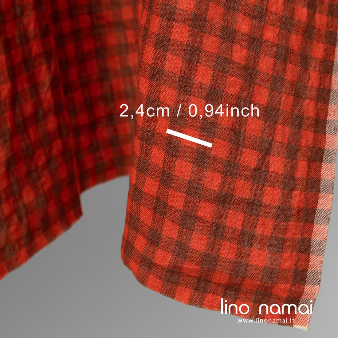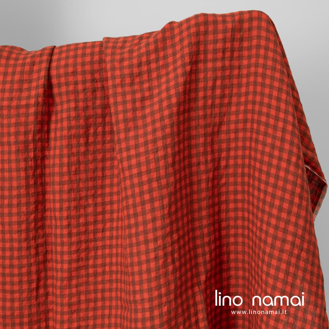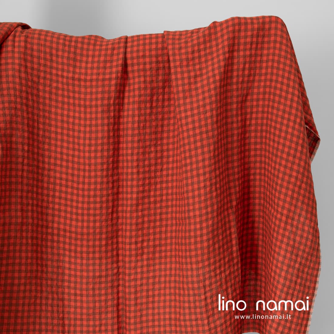 • Lininis audinys raudonai-rudai languotas skalbtas tinka drabužiams ir namų tekstilei siūti