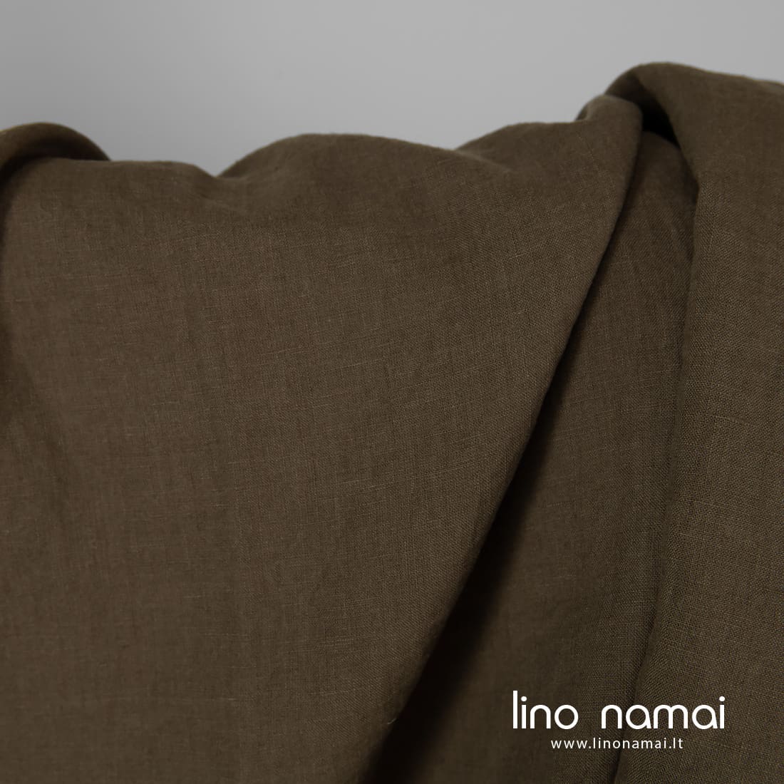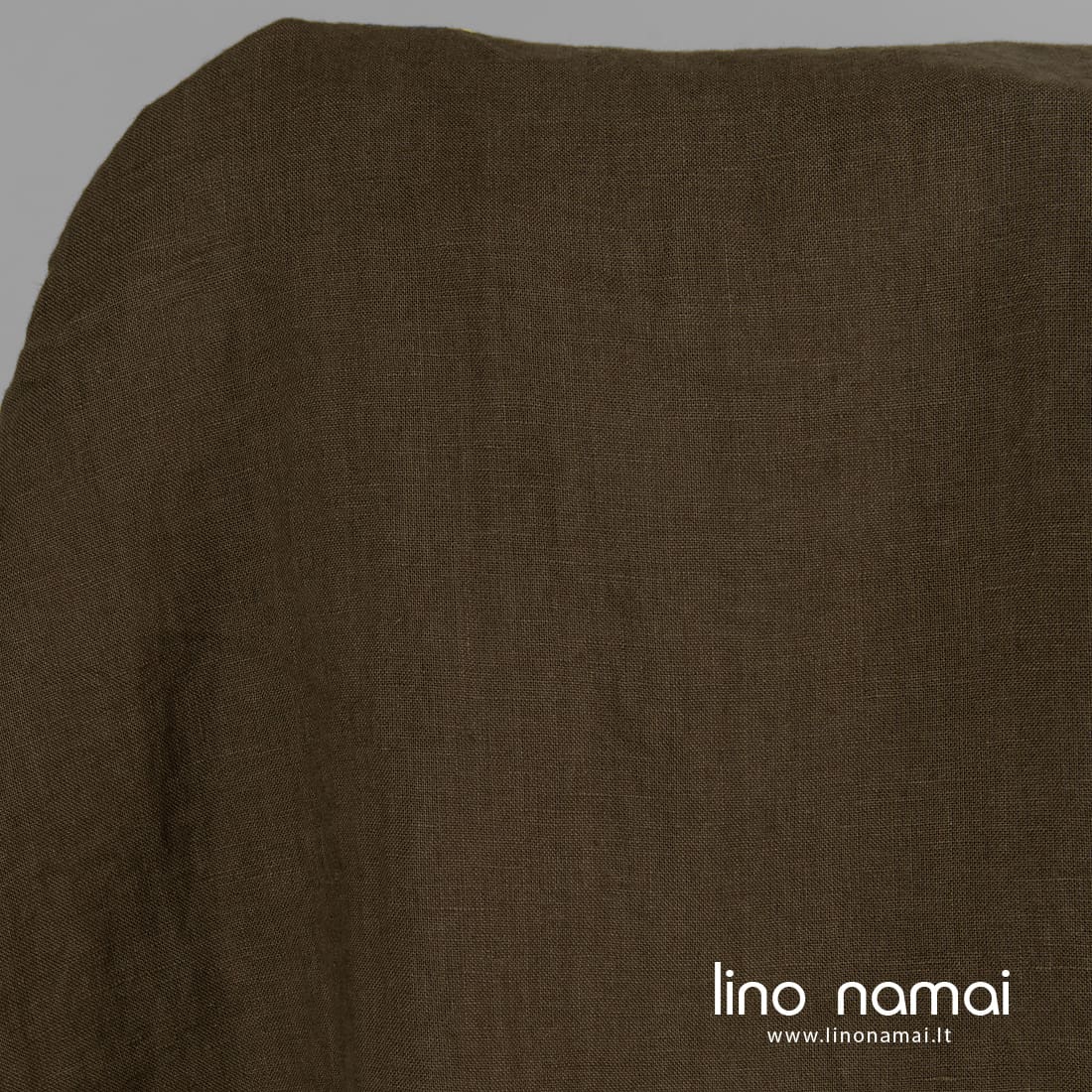 Lininis audinys samanų spalvos (tamsus rudai žalias) yra tvirtas, tankus, vidutinio storio. Skalbtas specialia technologija, kuri jam suteikė minkštumo ir švelnumo, sumažino traukimąsi.