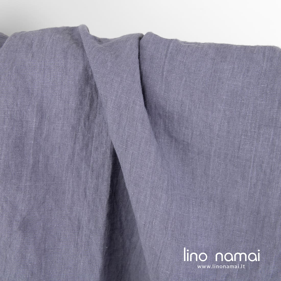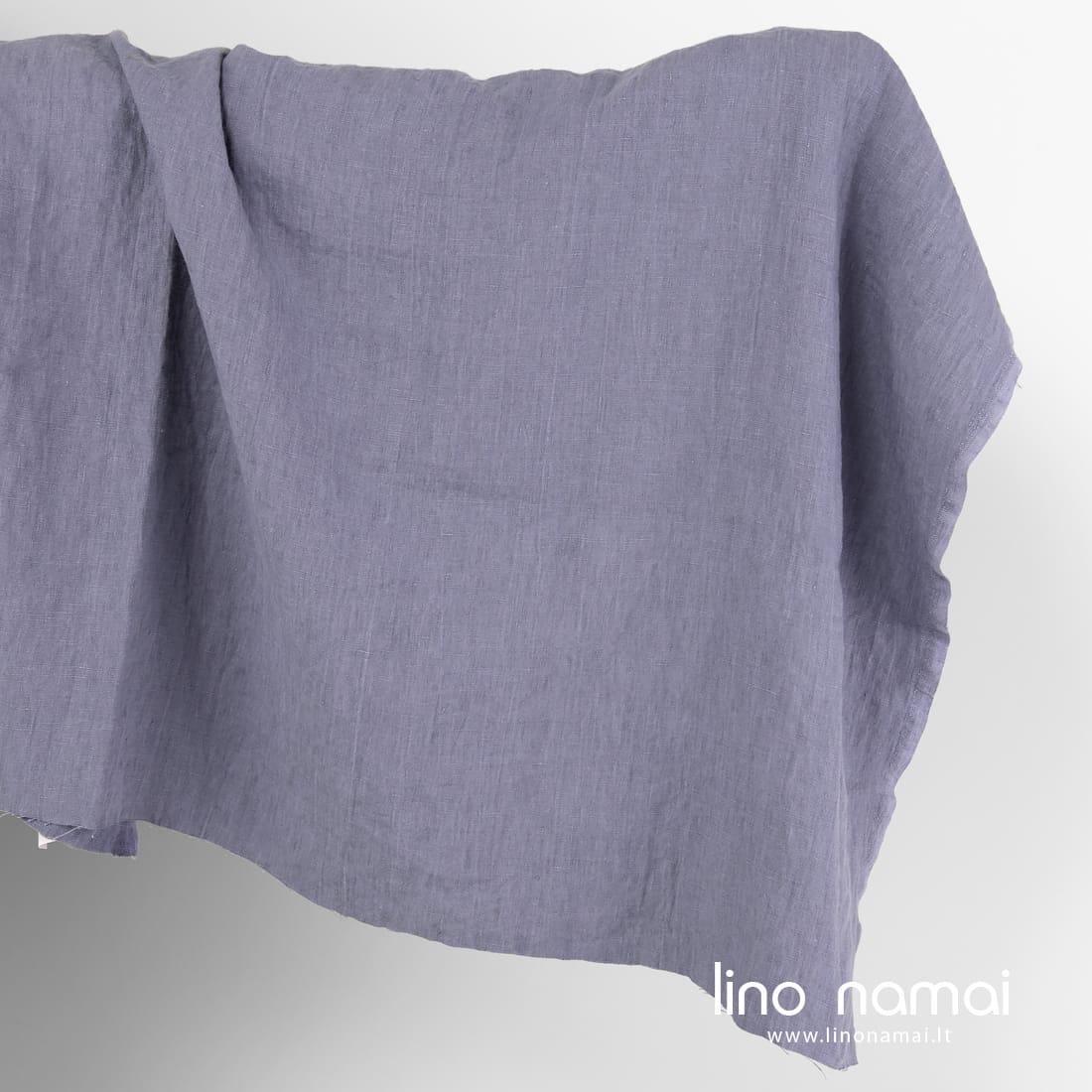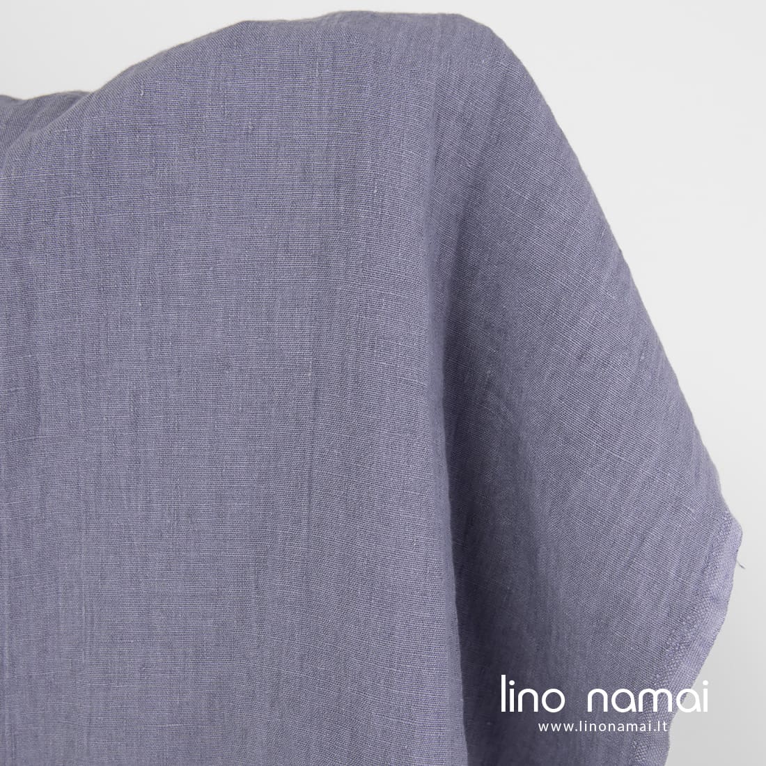Lininis audinys šviesiai violetinis su lengvu melsvu atspalviu. Tvirtas, tankus, vidutinio storio, sunkus. Skalbtas specialiu būdu, kad būtų minkštas, švelnus, draugiškas odai.