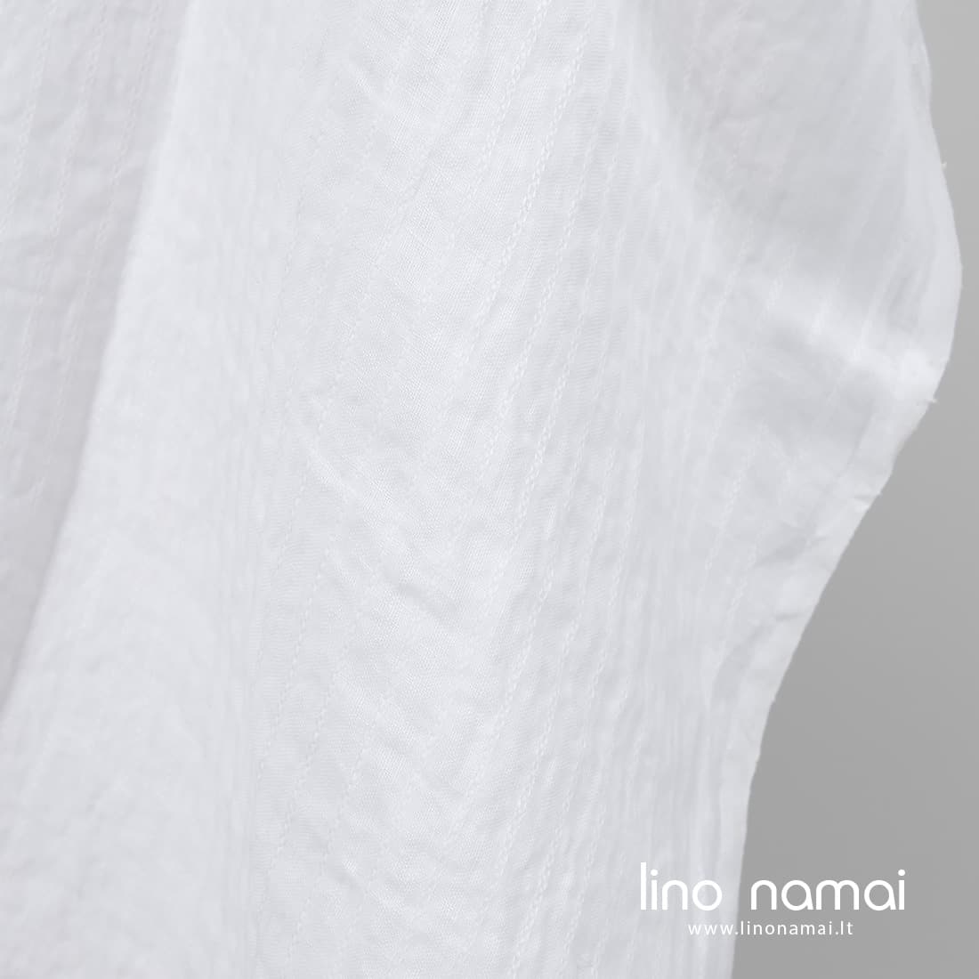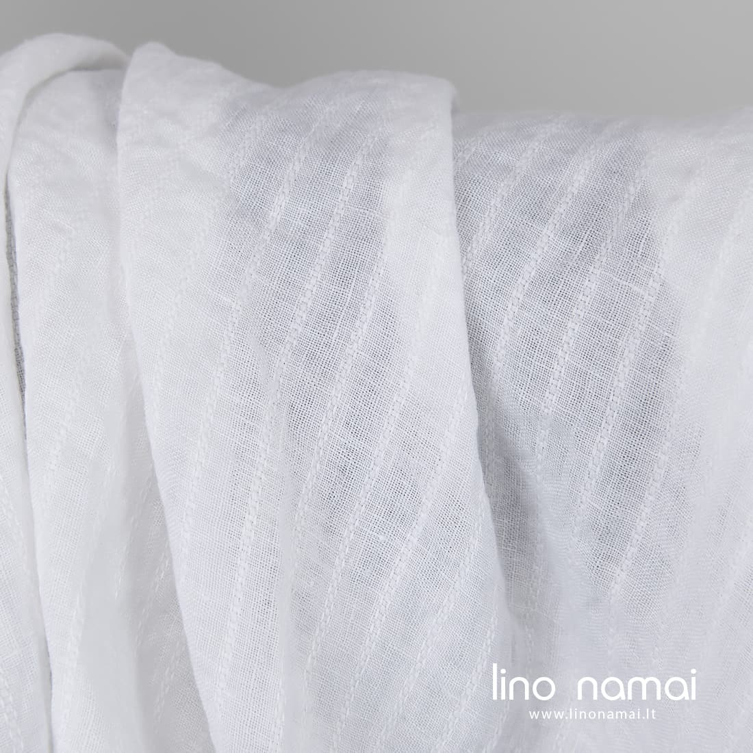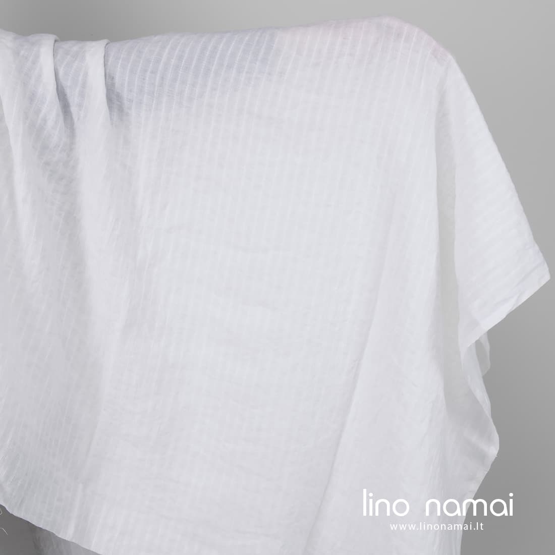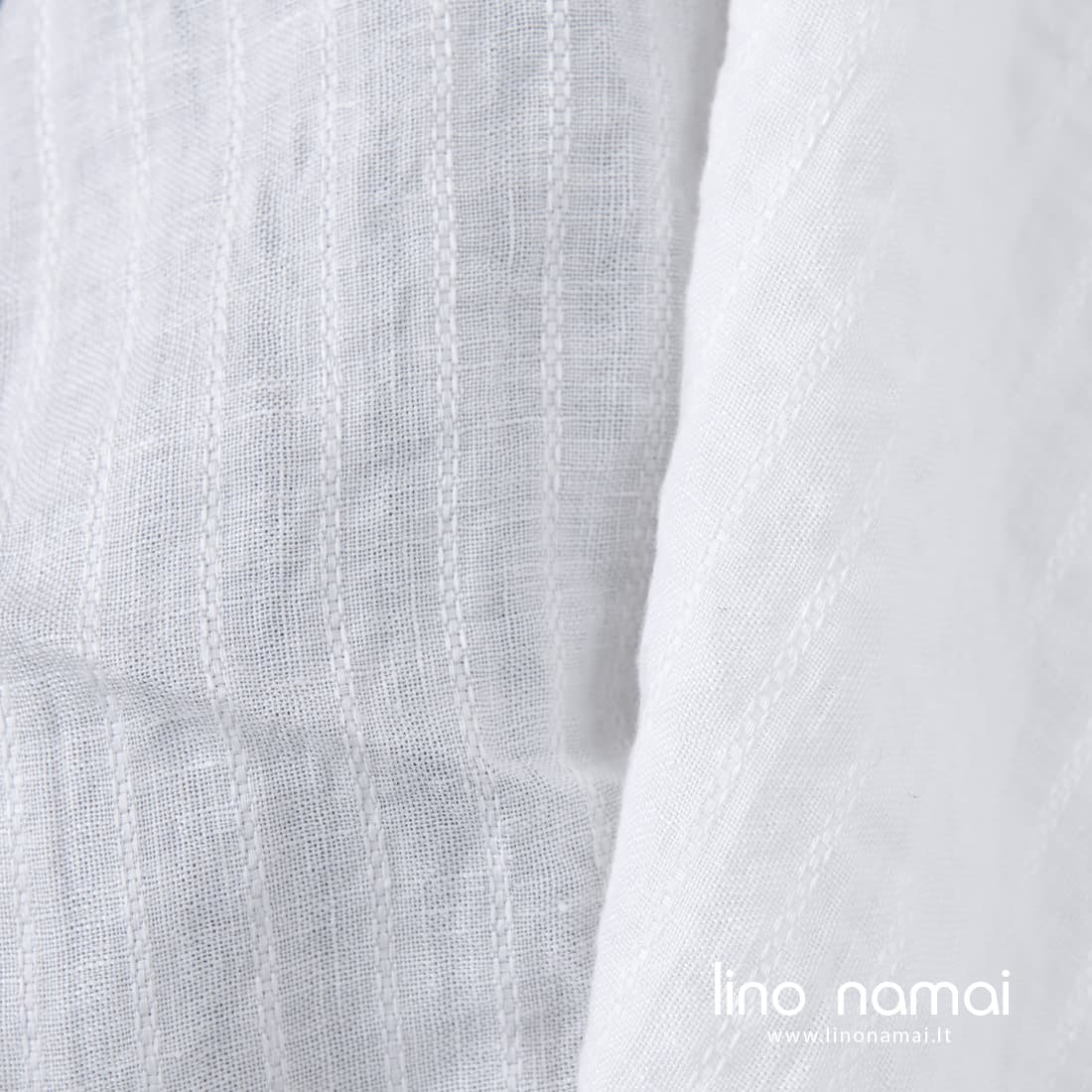 • Lininis ryškiai baltas audinys raštuotomis vertikaliomis juostelėmis skalbtas