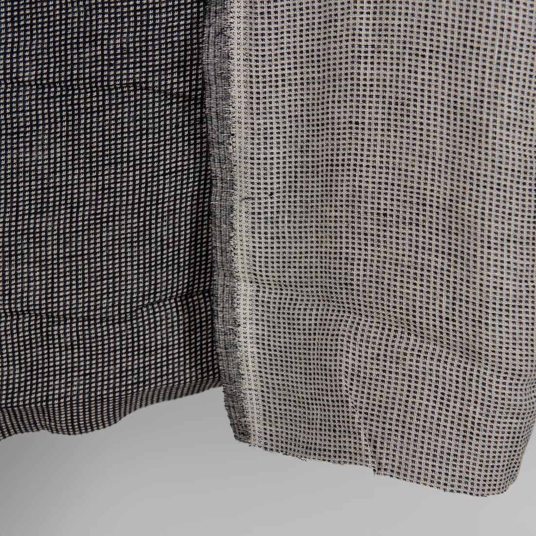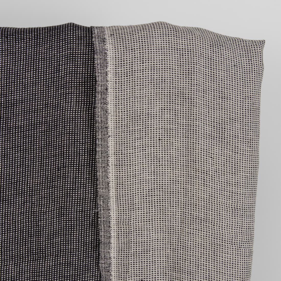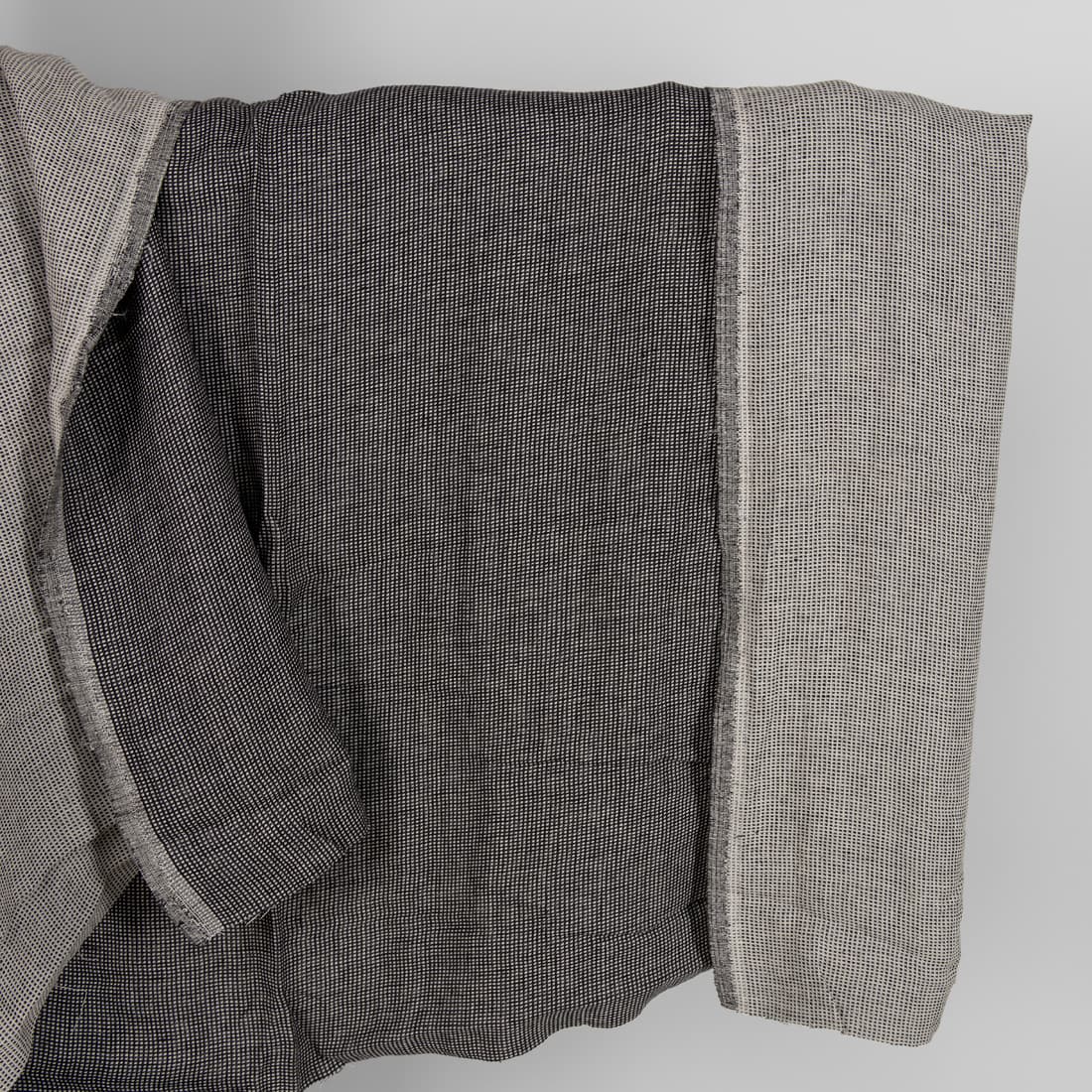 Lininis juodas languotas dvipusis audinys, skalbtas