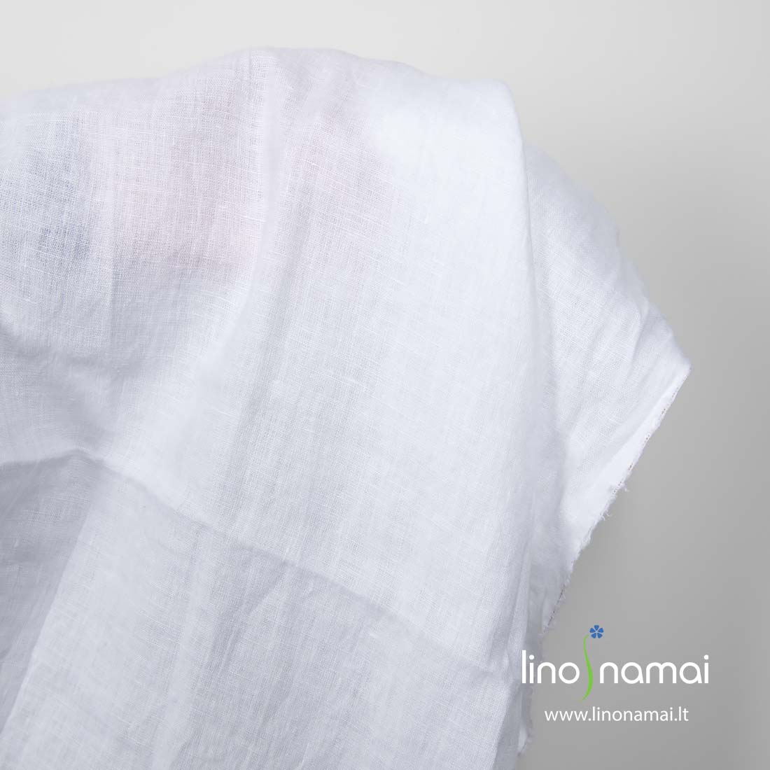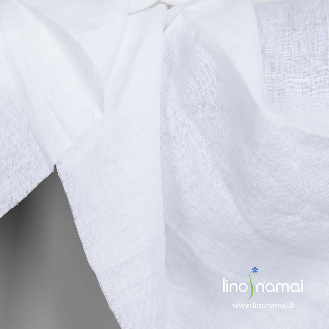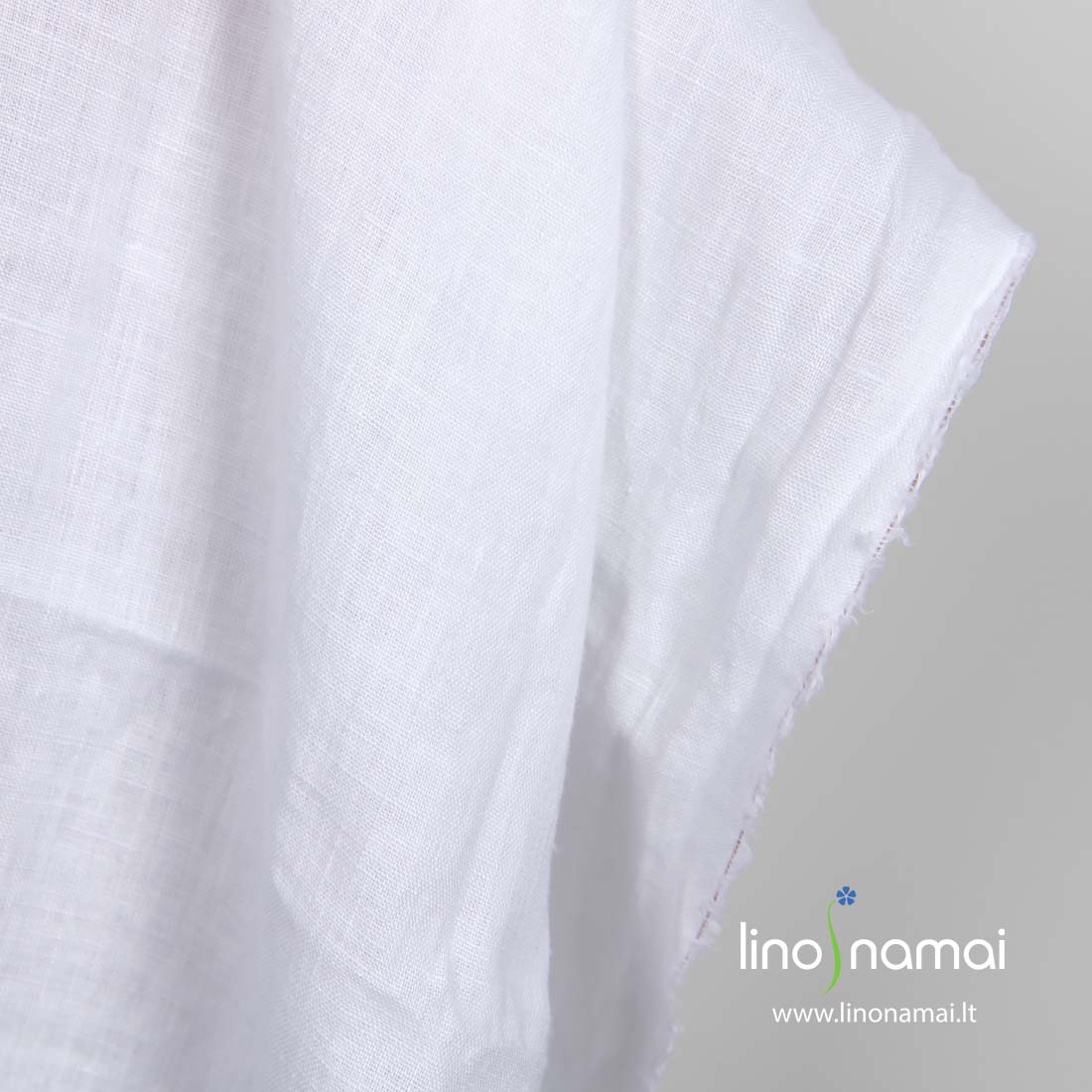 Lininis ryškiai baltas audinys, skalbtas specialia technologija, todėl ypač minkštas, švelnus, nebesitrauks skalbiamas. Audinys tankus, lengvas, vidutinio storio.