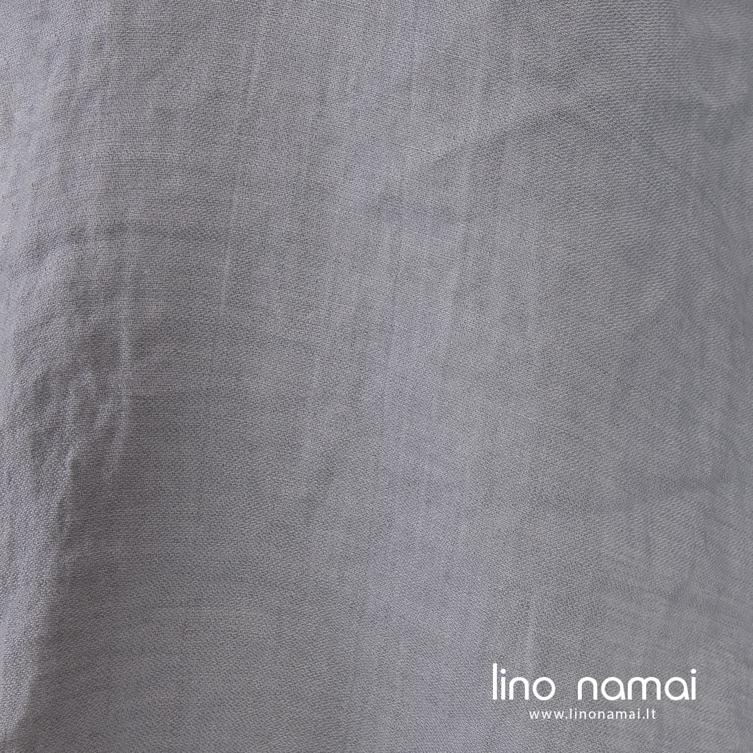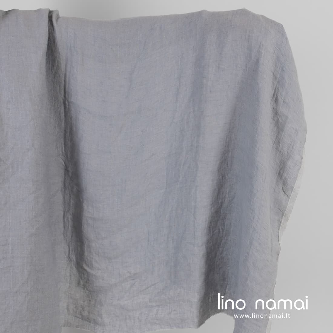 • Lininis satino audinys melsvai pilkas skalbtas minkštas švelnus