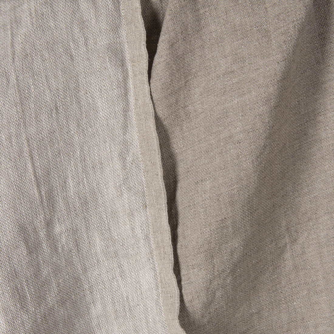 Lininis šviesiai pilkas skalbtas dvipusis audinys, kurio viena pusė yra natūralios pilkos lino spalvos, kitoje vyrauja balta spalva (galima naudoti abi audinio puses). Tvirtas, tankus, vidutinio storio. Audinį išskalbėme specialiu būdu, todėl jis minkštas, švelnus, malonus odai.
