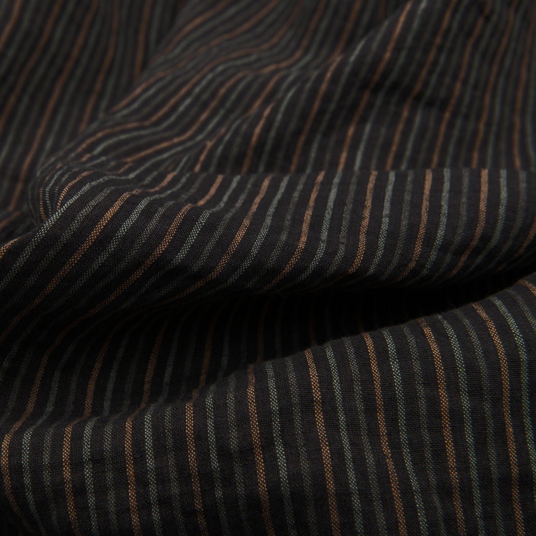 Lininis tamsiai pilkas audinys žalsvai dryžuotas, skalbtas