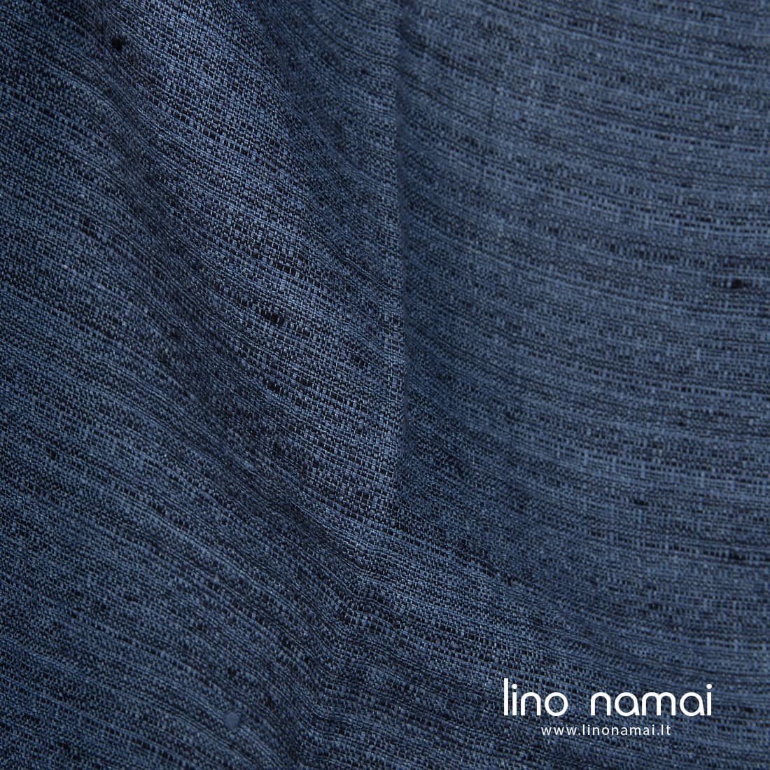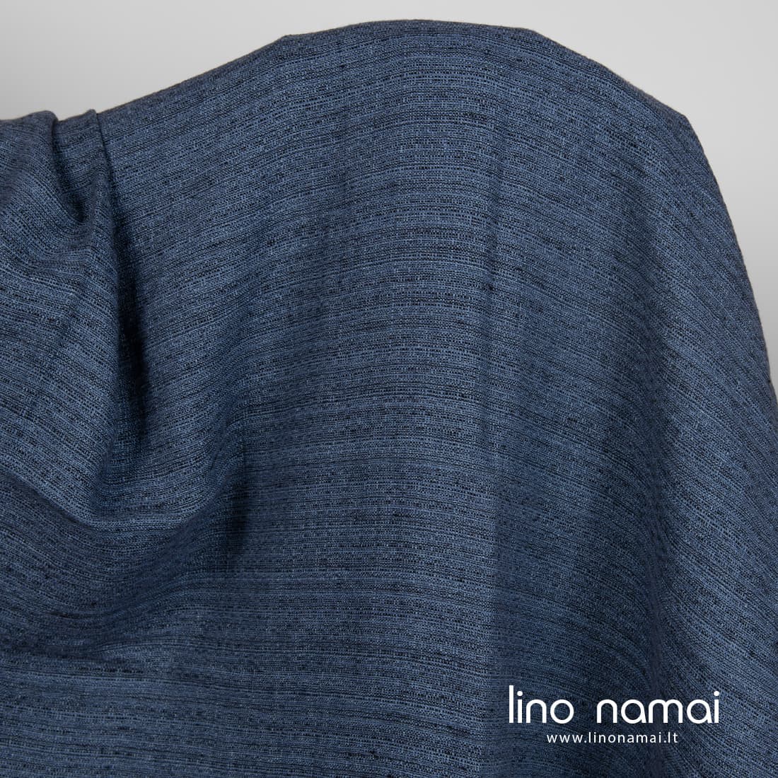 • Lininis tvido audinys iš džinso mėlynumo ir juodų verpalų, specialiai skalbtas