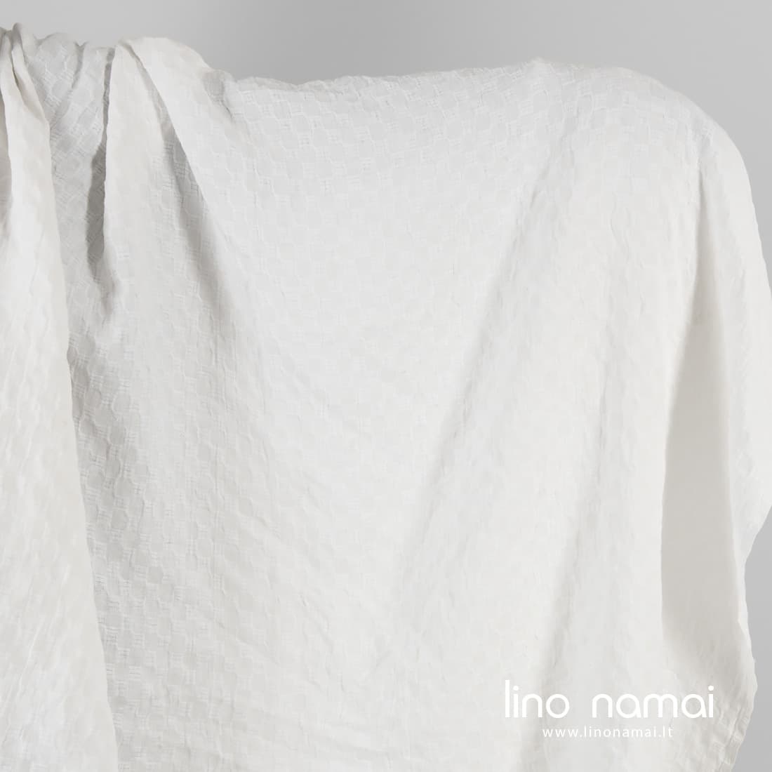 Lino audinys ryškiai baltas raštuotas skalbtas