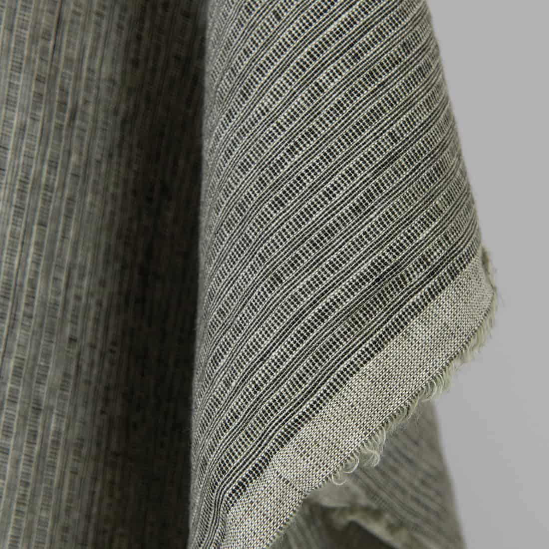- Raštas: smulkiaraštis audinys (stilizuotos vertikalios juostelės)