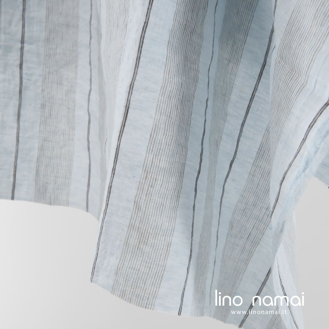 Melsvas lininis audinys vertikaliais rusvais dryžiais. Lengvas, tvirtas, tankus. Skalbtas specialia technologija, todėl nepaprastai minkštas, švelnus, malonus odai. Siūkite drabužius ir namų tekstilę.