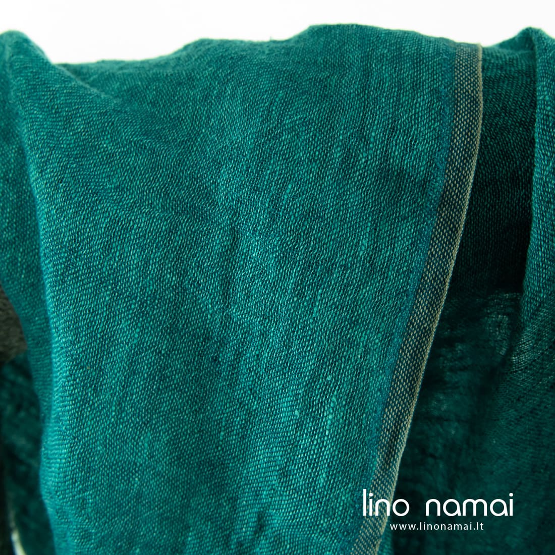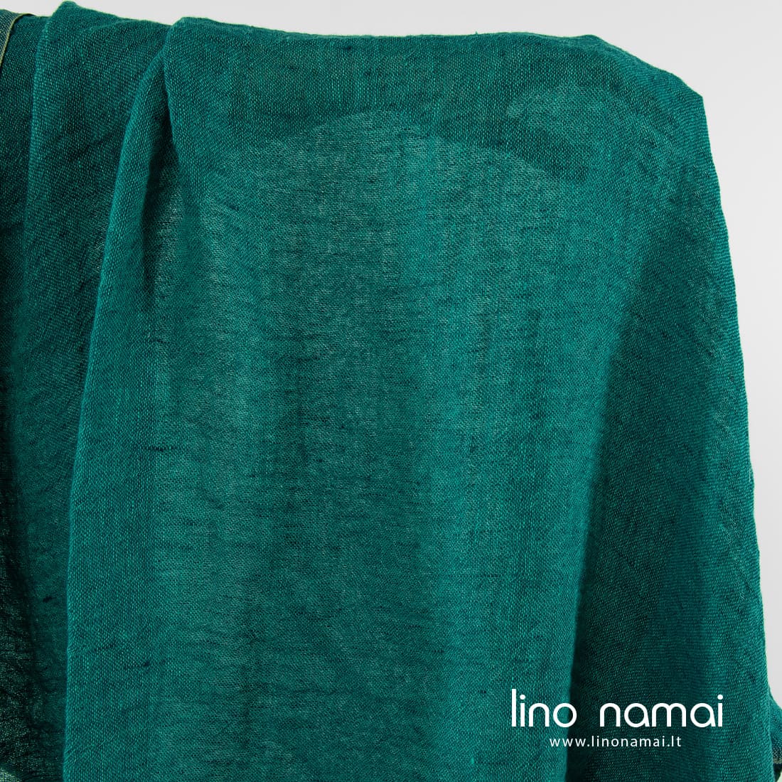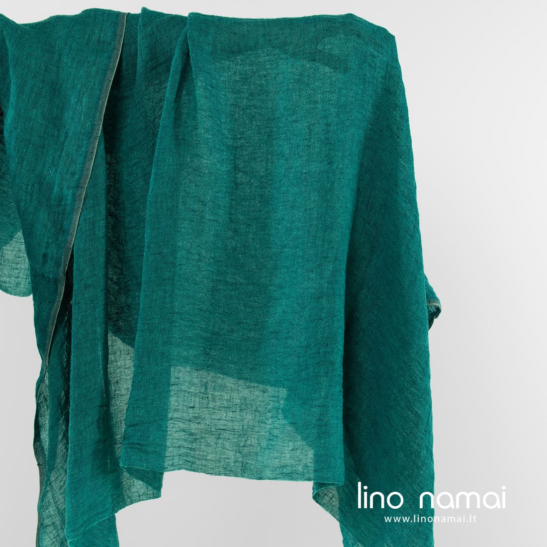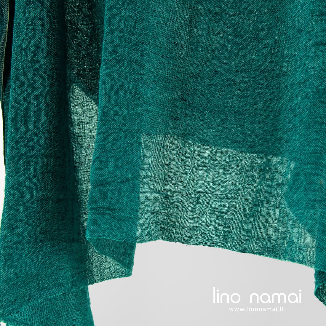 Permatomas mėlynai žalias lininis audinys. Jame suausti ryškios žalios ir tamsios turkio spalvos verpalai. Audinys lengvas, retas, minkštas, švelnus (skalbtas specialiu būdu). Tinka lengviems šalikams, užuolaidoms siūti.