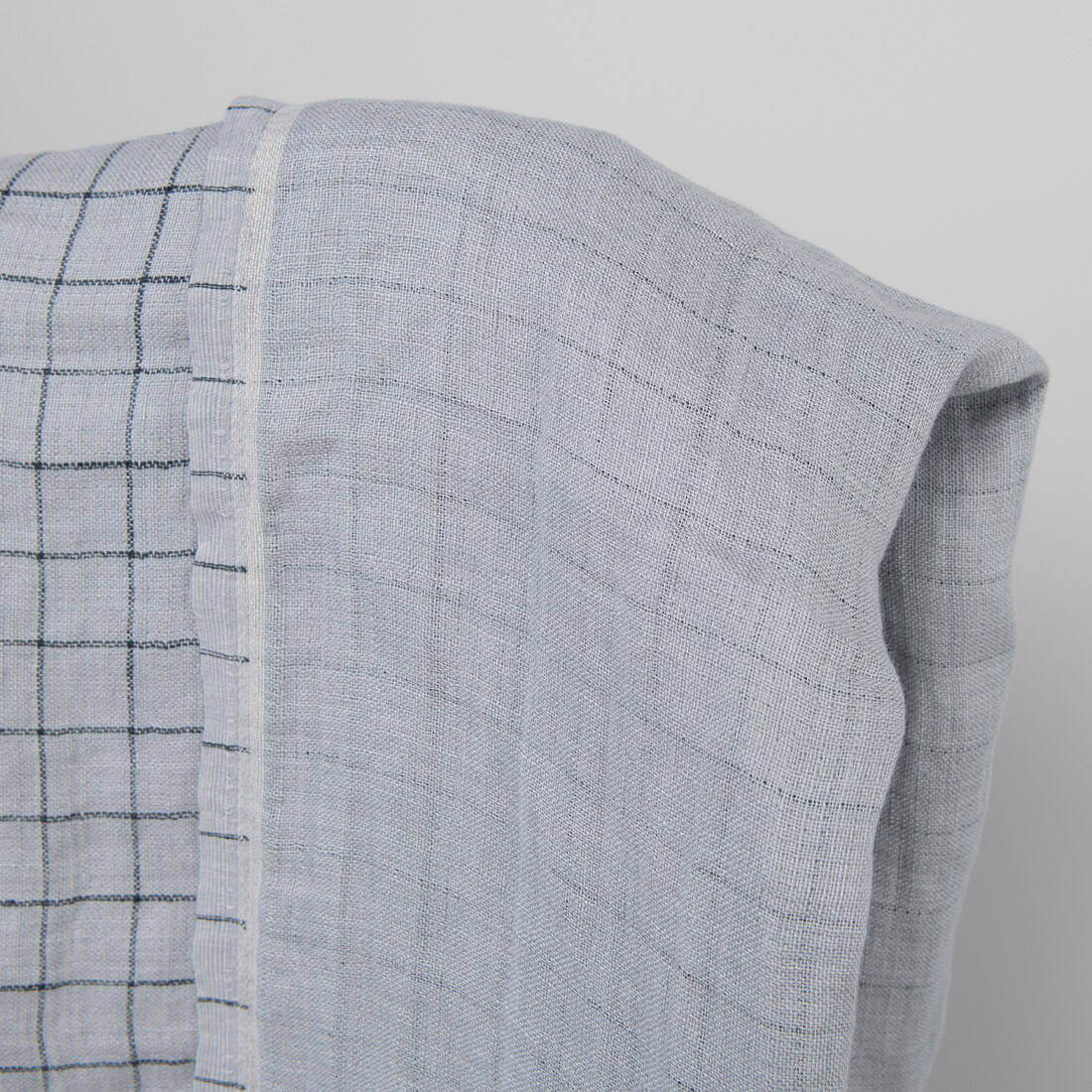 Pilkas languotas dvisluoksnis lininis audinys, skalbtas